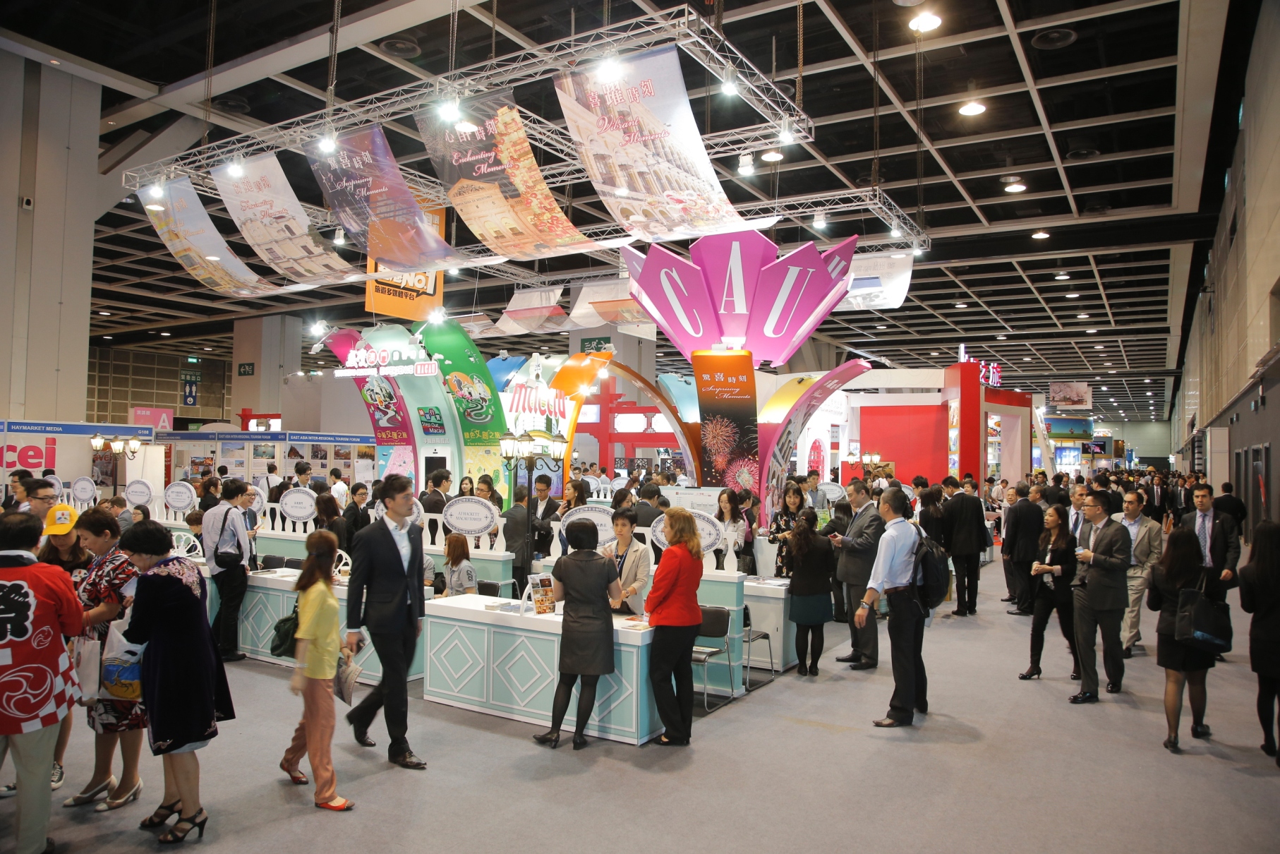 This year, MGTO has once again chosen “Touching Moments, Experience Macau” as its promotional theme and adopted “Lotus in blossom” as its booth’s major design with colorful ribbons extending from the top of the booth, symbolizing a myriad of touching moments in the vibrant city. The design of lotus flower extends toward the center of the booth, where digital panels showcase each of the “Step Out, Experience Macau's Communities” walking tour routes and their attractions, encouraging Hong Kong residents to come and experience the dynamic ambience in Macau.