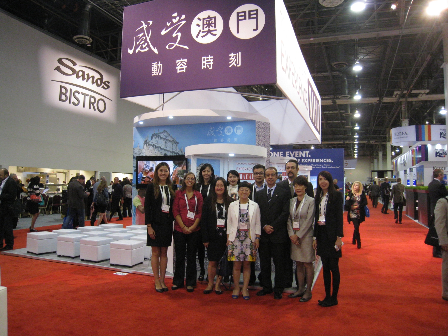 Furthermore, a promotional counter was set up by IPIM at the Macao Pavilion in the IMEX America 2014 venue, to promote its “One-Stop Service” for MICE Bidding and Support in Macao. IPIM also participated in more than 20 business matching sessions arranged by the Organiser and conducted discussions with potential buyers, as well as to promote Macao as an ideal destination for conventions and exhibitions. Other exhibitors in the Macao Pavilion included the Macau Government Tourist Office, local travel agencies and professional conference organisers, aspiring to explore the international tourism market and to promote Macao´s MICE environment and products.