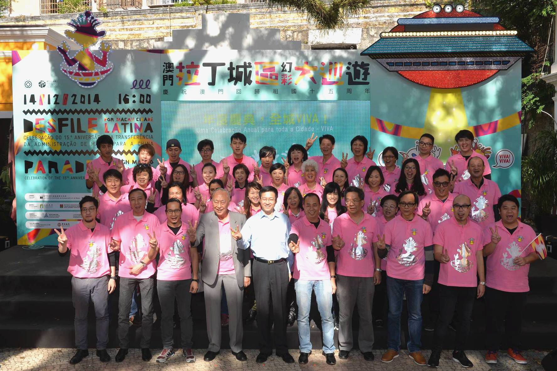 The “Parade through Macao, Latin City” is organised by the Cultural Affairs Bureau and is co-organised by the Civic and Municipal Affairs Bureau, the Macao Government Tourist Office, the Public Security Police Force, the Transport Bureau, the Fire Services Bureau, the Education and Youth Affairs Bureau of Macao and the Macao Association for the Promotion of Exchange between Asia-Pacific and Latin America. It is also supported by various organisations, including the Macao General Union of Neighbourhood Associations, the Macao Sam Pa Mun Residents Mutual Aid Association, the Macao Soi Ho Cheok Residents Mutual Aid Association, as well as VIVA Ambassadors supporters, namely the Recreation Club of the Bank of China – Macao Branch, the Macao Community Youth Volunteers Development Association, the General Volunteers Association of Macao and the Association of Social Service Volunteers Macao. This edition is also fully supported by Air Macao Co, Ltd. In addition, TDM (Teledifusão de Macau, S.A.) is serving as the designated television broadcaster.