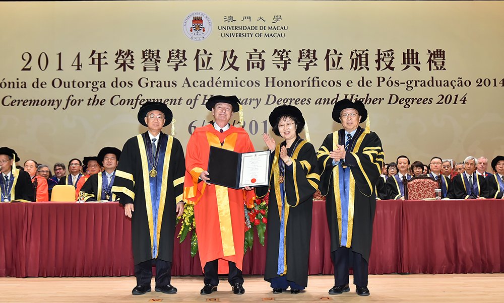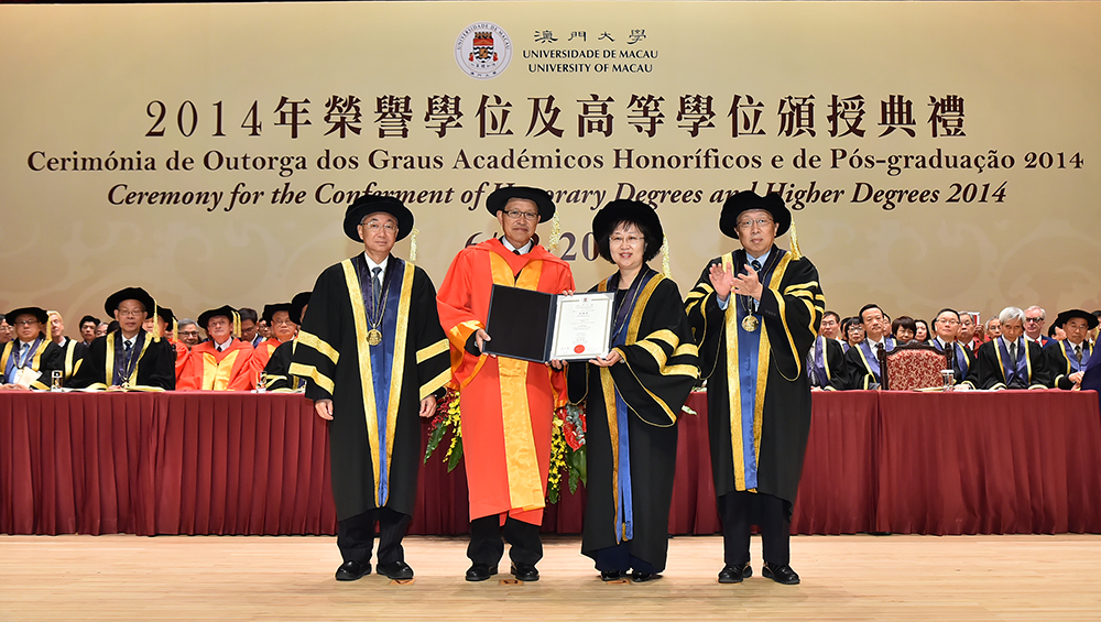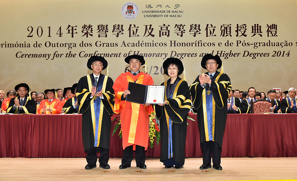 UM Rector Wei Zhao said in his speech that as testified by their professional and academic accomplishments, as well as the numerous important positions and honours they hold in their own fields, the five honorary degree recipients are the people who know how to make their dreams come true and they certainly inspire UM students in the search for their ideals.