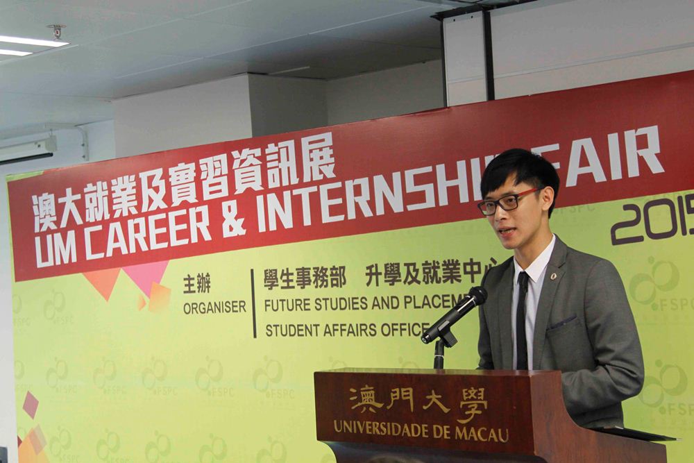 Elvo Sou, head of the Student Counselling and Development Section of the Student Affairs Office and organiser of the fair, said that this year’s fair is the largest in history, and in addition to providing various employment and internship opportunities, the fair teaches the students how to make career choices and provides an opportunity for them to showcase their talent. He added that UM plans to launch a series of assistance programmes to help students start their own business, so as to keep pace with the evolving needs for economic diversification of Macao’s society.