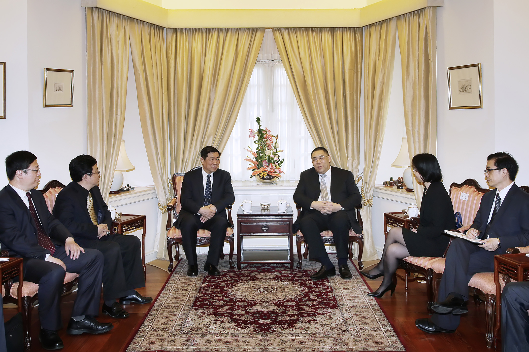 The Chief Executive, Mr Chui Sai On, met with the Vice Chairman of National Development and Reform Commission, Mr He Lifeng, at Government House where they exchanged views on Macao’s position in contributing to the development of “Belt and Road”.