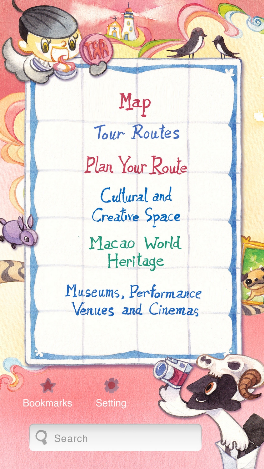 Apart from the information on Macao’s cultural and creative entities, the latest version of the CCM Map mobile app offers users details regarding the “Macao World Heritage” as well as information on “Museums, Performance Venues and Cinemas”. Users may look through the information, images and locations of the above mentioned entities or places of interest. The newly included section “Tour Routes” is divided into “A Stroll in the Parish” and “Tour Routes for the Experience of Culture and Creativity”. Providing informative travelling references, the routes connect a variety of local cultural and creative venues and World Heritage Sites, guiding users across the city for a subtle taste of art and culture.