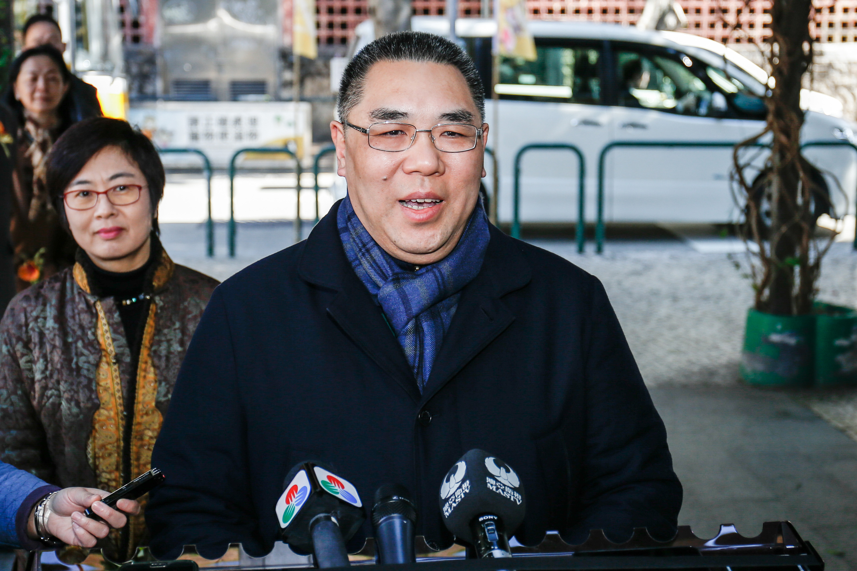 • Chief Executive, Mr Chui Sai On, speaks to reporters.