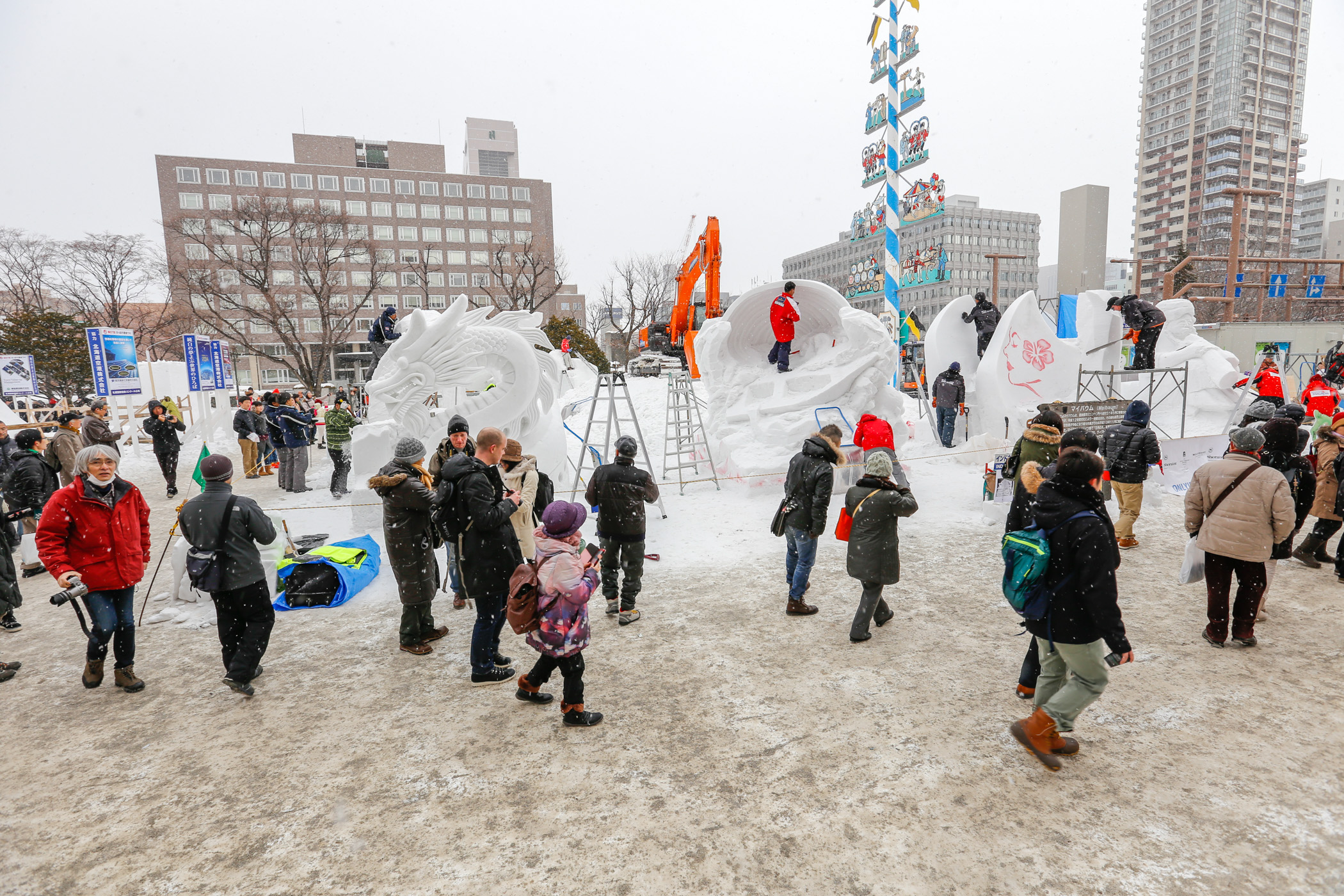 As one of the highlights in the Sapporo Snow Festival, the 43rd International Snow Sculpture Contest featured twelve teams from different countries and regions including Australia, Finland, Hawaii, Latvia, Malaysia and Macao, etc. The teams were required to carve their snow sculpture openly at 11 chome on Odori Site from 4 to 7 February. Winners were announced on the site on 8 February.