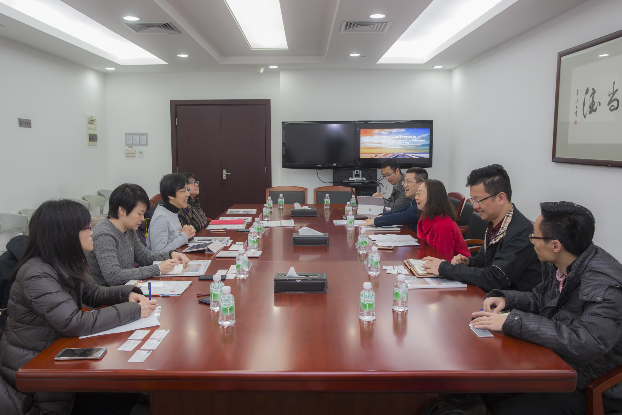 During the preparation work meeting held this morning (16 February) for “multi-destination” tourism promotional activities of Macao and Nansha in 2016, MGTO Director Maria Helena de Senna Fernandes, Deputy Chief of the People’s Government of Nansha District of Guangzhou, Yu Ruolan, Director of Nansha District Tourism Bureau, Hong Minqi, as well as other officials listened to the research project of “multi-destination” tourism promotion of Nansha, Hong Kong and Macao in 2016 presented by the Fok Ying Tung Research Institute located in Nansha under the Hong Kong University of Science and Technology. Nansha District Tourism Bureau then presented its promotional plan of 2016 based on the above project, followed by an exchange of ideas and perspectives with MGTO. The two parties discussed the directions of their cooperation in line with the project, and confirmed the next steps to carry out the collaboration plan. This year, the two tourism authorities will look into the possibilities to support travel trade launching multi-destination tours to Macao and Nansha, and consider carrying out promotional activities in Mainland cities along the high speed rail route between Wuhan and Guangzhou.