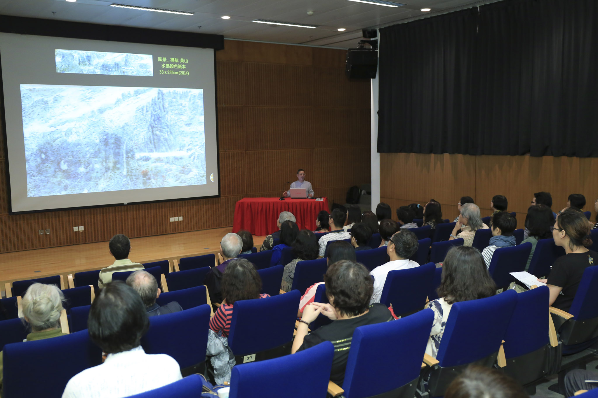 Organised by the Cultural Affairs Bureau, the “Roaming Vision + Digital: Exhibition of Ink Paintings by Leung Kui Ting” is now open at the IACM Temporary Exhibitions Gallery. In conjunction with the exhibition, a talk entitled “Roaming Vision + Digital: Talk about the Ink Paintings by Leung Kui Ting” was held at the Macao Museum of Art on 12 June, where Leung Kui Ting was invited to introduce the concept and the structure of ink landscape paintings. The talk attracted 55 attendees in total, with Mr. Leung engaging in a passionate interaction and exchange with the participants.