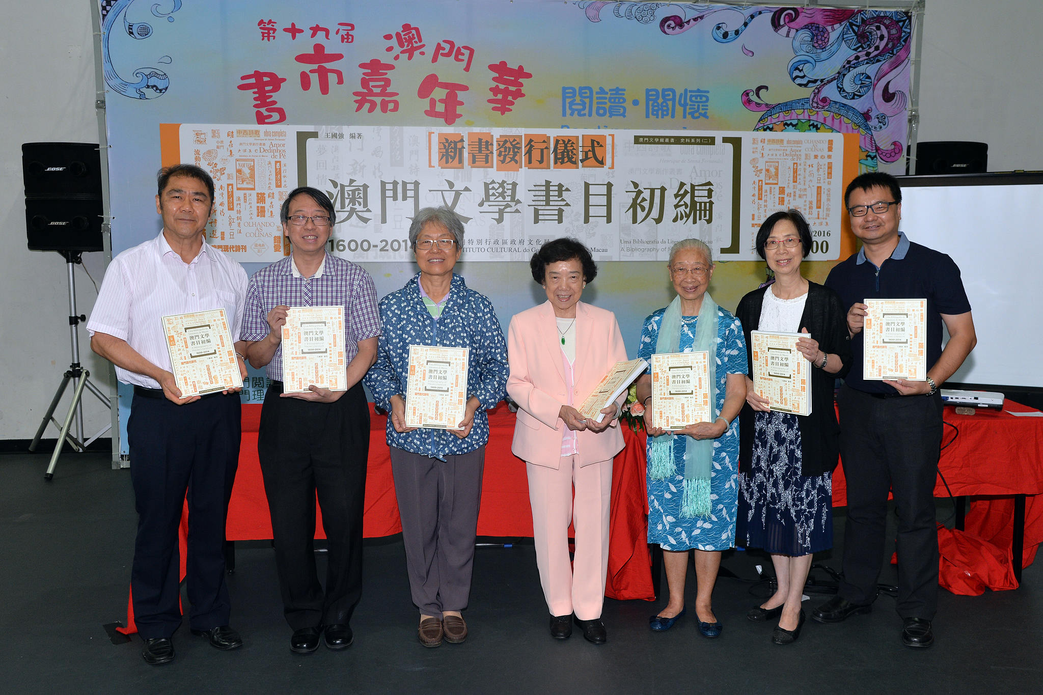 Organized by the Cultural Affairs Bureau (IC, from the Portuguese acronym), a launching ceremony of the book titled “A Bibliography of Macao Literature 1600-2014” was held on Saturday, 9 July, at 4pm, in the “19th Macao Book Carnival”, at the Macao Polytechnic Institute Sports Pavilion. The launching ceremony was officiated by the Head of the Division of Research and Publications of the Cultural Affairs Bureau, Wong Man Fai; the book’s author, Dr. Wong Kwok Keung; the President of the Macao Library and Information Management Association, Choi Chi Long; the General-Director of the Pen of Macau, Tong Mui Siu; the Principal of Macao Lingnan Middle School, Ao Kam Iong; the President of the Macao Association of Literacy Promotion, Chan In Wa; and the veteran Macao educator, Lao Sin Peng.