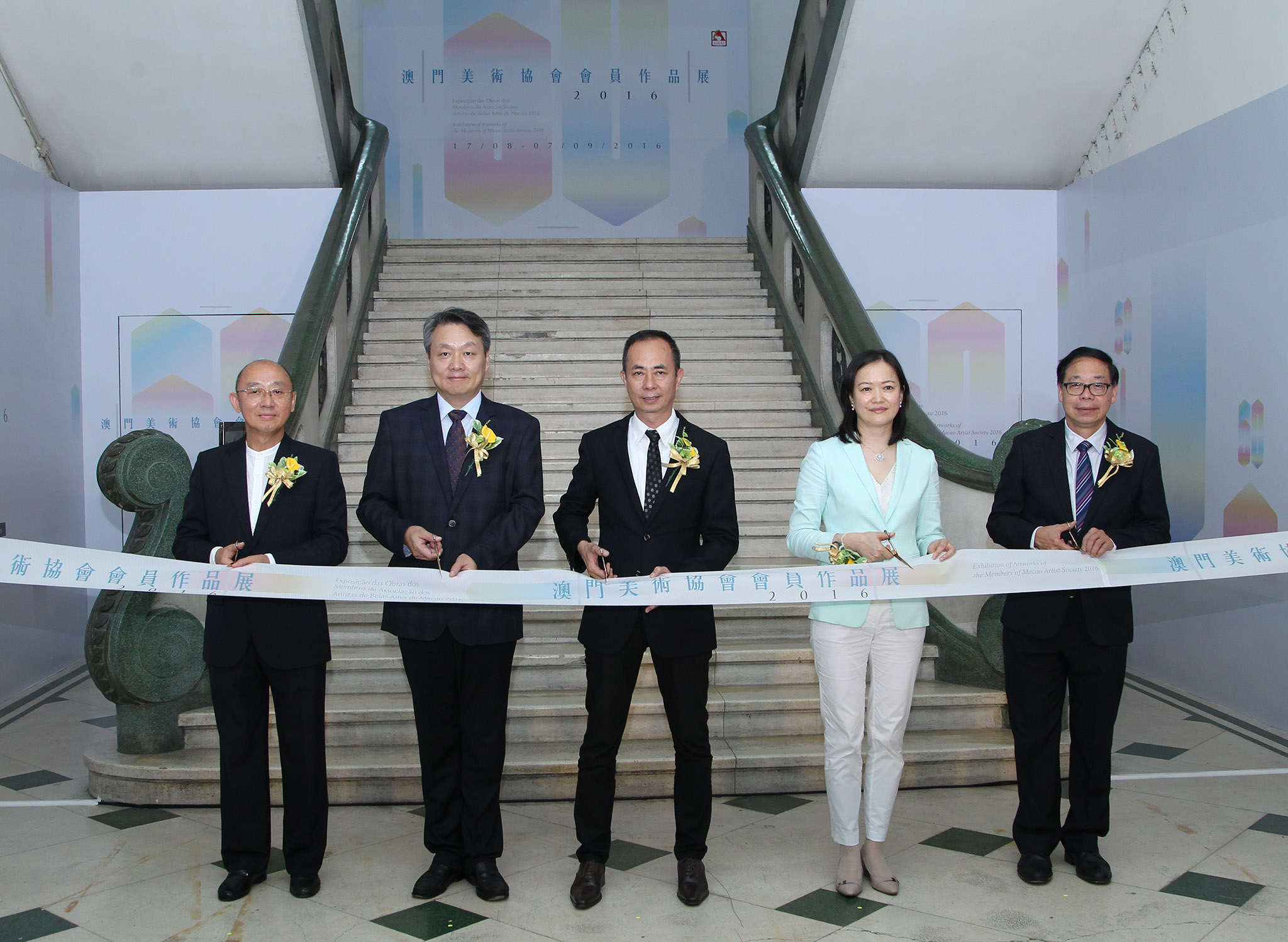 Jointly organised by the Cultural Affairs Bureau and Macao Artists Society, the “Exhibition of Artworks of the Members of Macao Artists Society 2016” was inaugurated on Tuesday, 16 August, at 6:30pm, at the Nam Van Old Court Building, featuring a total of 169 works by members of the Society. The opening ceremony was officiated by the President of the Cultural Affairs Bureau, Ung Vai Meng; the Assistant of the Chief of the Department of Education and Culture of the Liaison Office of the Central People’s Government in the Macao S.A.R., Shao Bin; the Vice-President of the Administrative Committee of the Macao Foundation, Zhong Yi Seabra de Mascarenhas; the Director of Macao Daily News, Lok Po and the President of the Macau Artist Society, Lai Ieng.