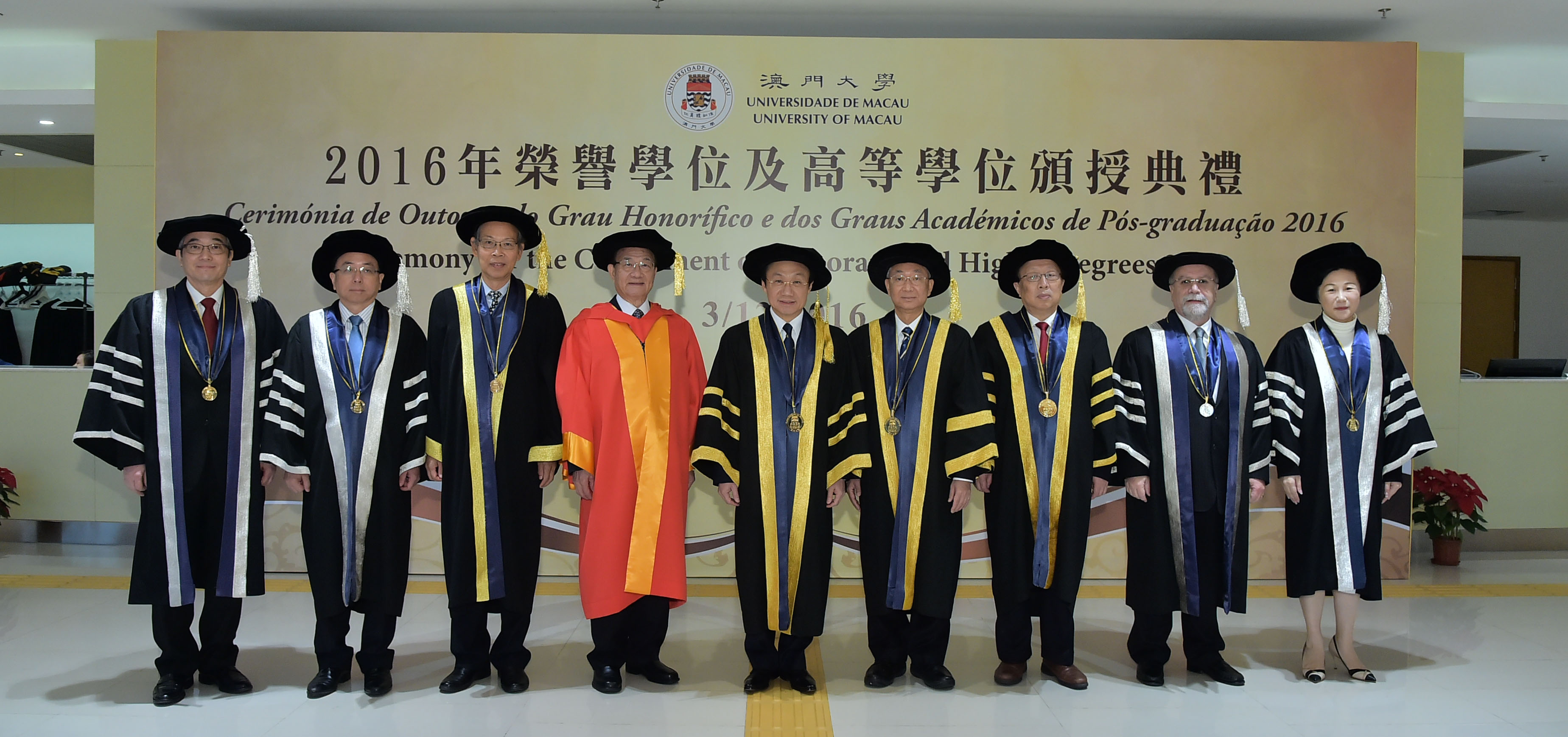The University of Macau (UM) today (3 December) held the Ceremony for the Conferment of Honorary Degrees and Higher Degrees 2016 to confer an honorary doctorate in social sciences on the renowned educator Dr Tse Chi Wai, in recognition of his professional achievements and his outstanding contributions to higher education and society.