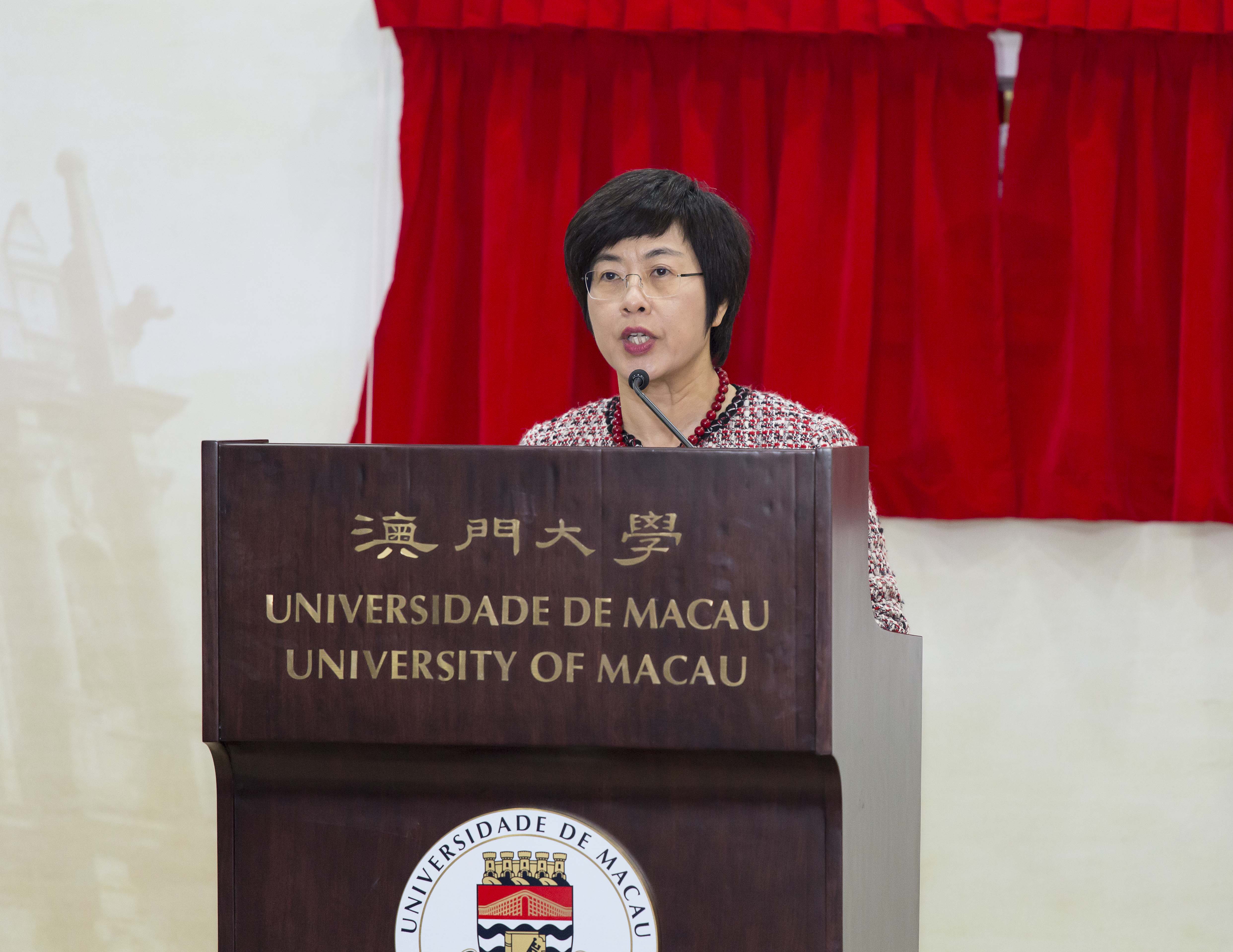 Chan Hoi Fan says in her speech that Macao is an important ‘bridge’ connecting China and Portuguese-speaking countries. For this reason, developing research in Chinese history and culture in Macao will directly contribute to the dissemination of Chinese culture in Portuguese-speaking countries, which will increase the international exchange and influence of Chinese culture. Chan believes that the Centre for Chinese History and Culture will provide a good platform for young people to learn about Chinese history and culture. She adds that since its establishment, UM has spent a lot of effort in increasing its teaching and research capacity in the field, and the university now possesses not only first-class facilities but also a core group of nationally and internationally known experts and scholars. She expresses confidence that the establishment of the centre will enable the university to consolidate its resources and maximise its strengths in order to make strong contributions to the study of Chinese history and culture and its promotion.