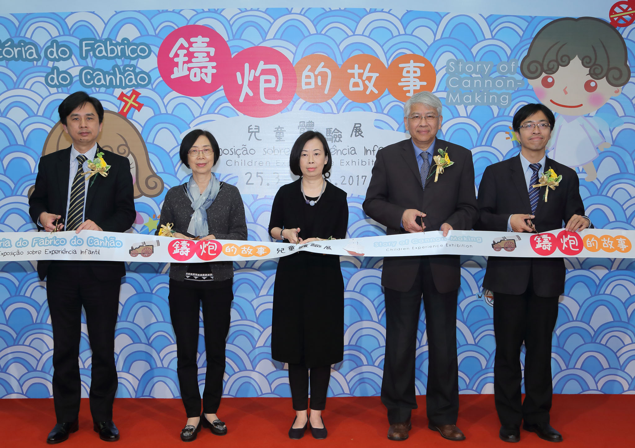 The “Story of Cannon-Making – Children Experience Exhibition”, organised by the Macao Museum, under the auspices of the Cultural Affairs Bureau, was inaugurated on Friday, 24th March, at 6pm, in the lobby of the Macao Museum, and was officiated by the Head of the Department of Exhibitions and Museums of the Cultural Affairs Bureau, Lei Lai Kio; the member of the Cultural Consultative Committee, Tong Mui Siu; the Rector of the City University of Macau, Zhang Shu Guang; the Head of the Department of Research and Educational Resources of the Education and Youth Affairs Bureau, Wong Kin Mou; and the Director of the Macao Museum, Loi Chi Pang. The exhibition will be open to the public from 25th March to 20th August, on the 3rd floor of the Macao Museum.