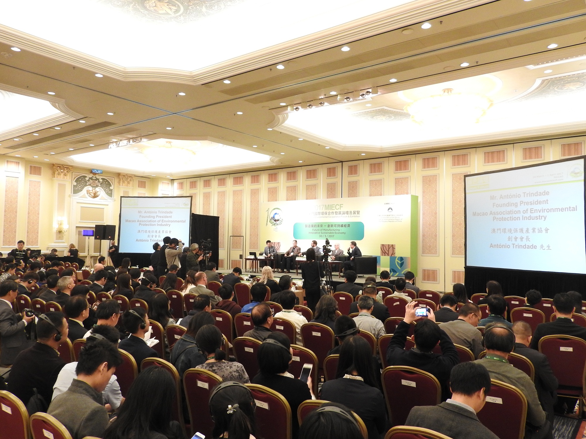The “Green Business Co-operation Day” is one of 2017MIECF’s serial activities, and includes the Green Business Forum sessions and a Signing Ceremony. This year’s “Green Business Co-operation Day” consists in two forum sessions, attracting nearly 380 participants. The first session was dedicated to the topic "Future of Manufacturing – Innovative Sustainable Economy", focusing on the transition from traditional manufacturing industry. Given the introduction of innovative business models, a new era of carbon emission awareness and consumers’ demand for enterprises that promote sustainable development, it is necessary for the manufacturing sector to find a new path for green development. Mr António Trindade, founding President of the Macao Association of Environmental Protection Industry, moderated the session. The speakers included: Mr Junji Hatano, Chairman and Chief Executive Officer of Carbon Partners Asiatica; Mr Vasco Pimenta, Chief Executive Officer of Spin.Works; Mr Roy Eric Xavier, Chairman of the International Macanese Alliance (AIM - Macau); and Mr Billy Hu, lecturer of the Dyson School of Design and Engineering, Imperial College London.