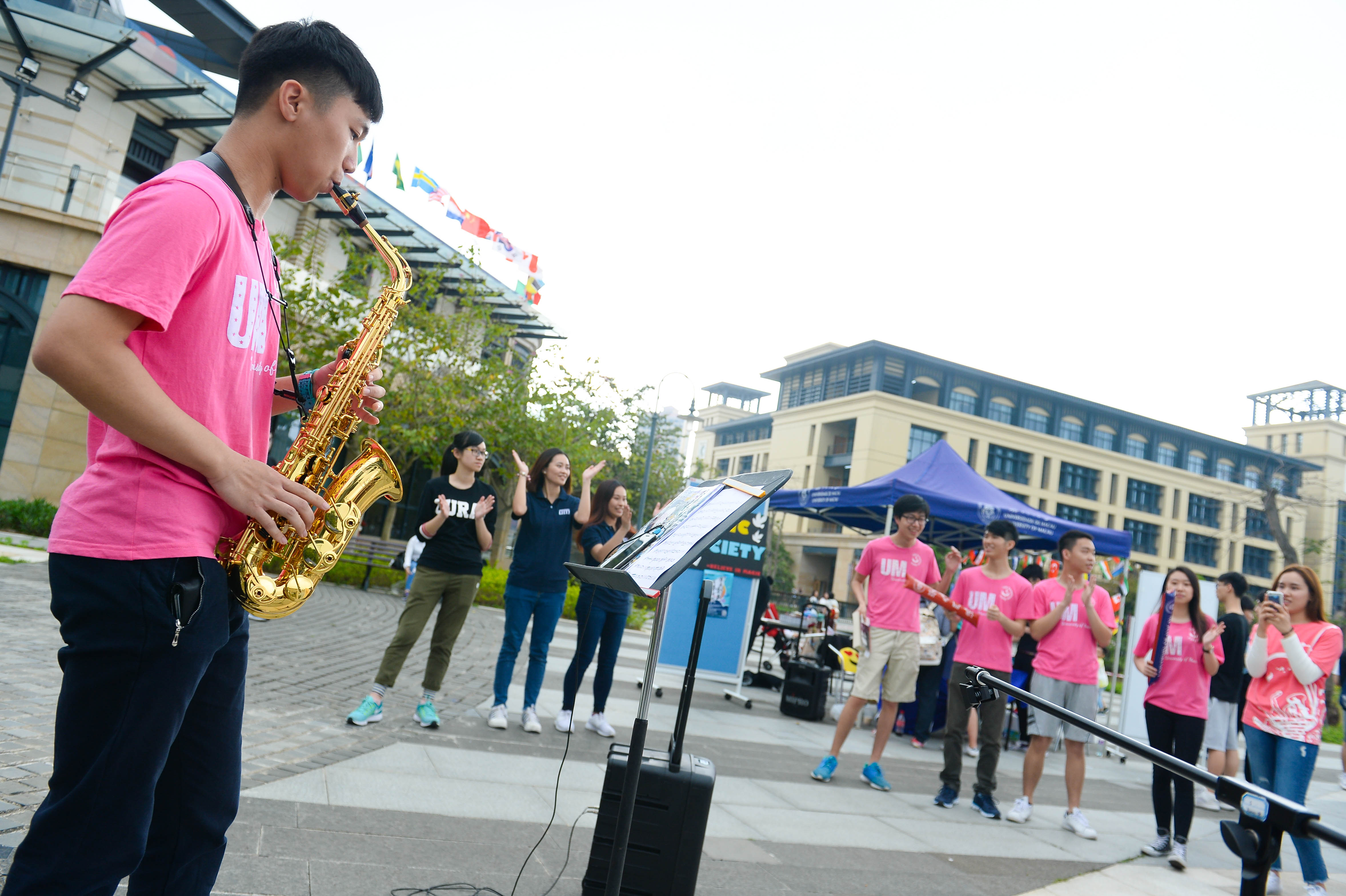 UM alumni and famous long singers Rico Long and Ken Sou performed at the Open Day. UM students and staff from around the world paraded around the campus. The various cultural and art groups formed by UM students held flashmobs in different locations of the campus. The International Food Festival held on the Central Avenue also attracted throngs of visitors.