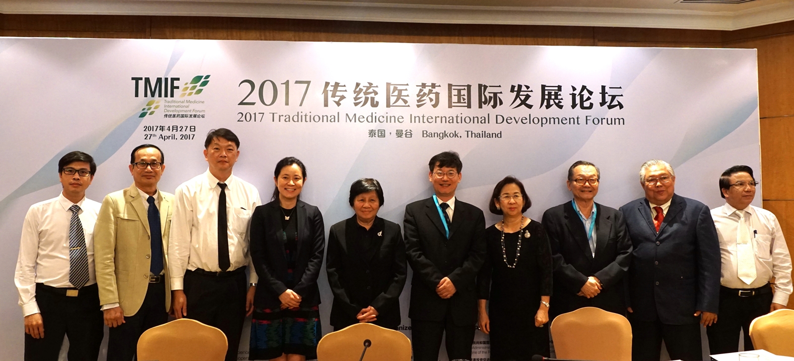 The Guangdong-Macao Traditional Chinese Medicine Technology Industrial Park (GMTCM Park), in conjunction with Thailand’s Ministry of Public Health (MOPH), Department for Development of Thai Traditional and Alternative Medicine (DTAM) and Naresuan University in Thailand, officially opened the 2017 Traditional Medicine International Development Forum in Bangkok, Thailand today (27 April 2017). The Forum convened representatives of Traditional Medicine from government departments, organizations, associations and enterprises of Thailand, Singapore, Vietnam, Cambodia and Indonesia, in addition to other ASEAN Member States, mainland China and the Macao SAR Government, attracting a turnout of nearly 200 professionals.