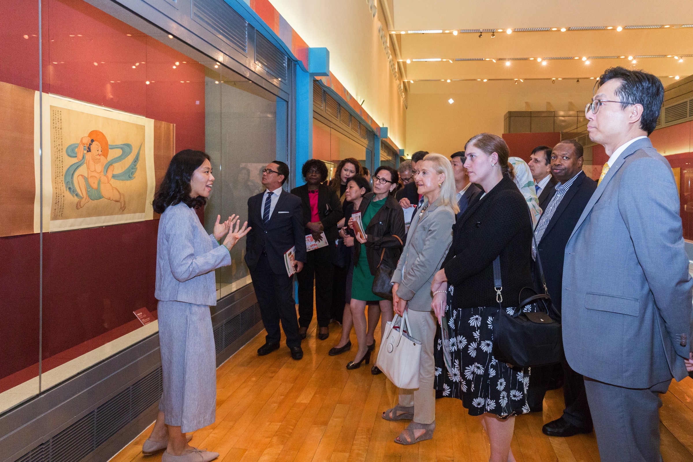 The consular corps, accompanied by the Vice President of IC, Kent Ieong Chi Kin, and guided by IC personnel, visited the exhibition “The Art of Zhang Daqian” at the Macao Museum of Art. This exhibition features the Sichuan Museum’s collection of Zhang Daqian’s masterpieces from his early years, including his replicas of the murals during the years in Dunhuang, landscape paintings, portraits and line drawings, letters written and seals used before and after his trip to Dunhuang.The delegation then headed to the MDC, installed in an old factory, getting an overview of Macao’s cultural and creative industries and learning about the development and features of the industries.