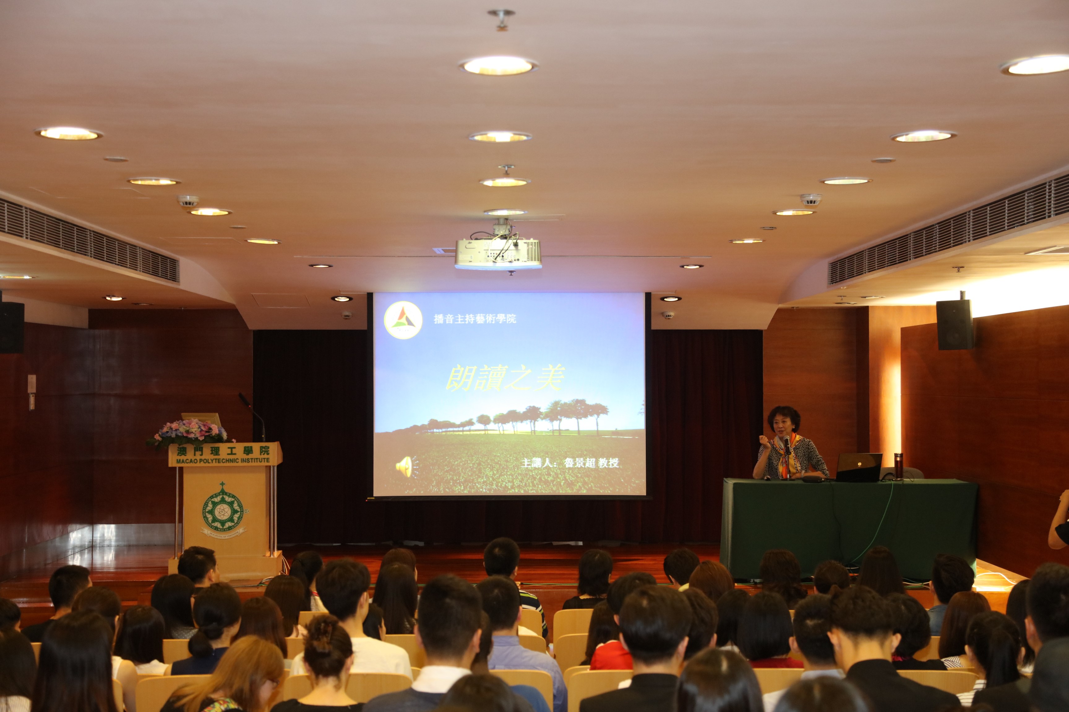 More than 30 teachers and students from several universities, including the Communication University of China (CUC), visited the Macao Polytechnic Institute (MPI) on 22 May for a cultural exchange and academic sharing session. Professor Lu Jingchao, member of the national committee of Chinese People's Political Consultative Conference and the Dean of the School of Presentation Art of CUC, chaired a session entitled ‘The Beauty of Recitation’. Students from CUC also put on a wonderful recitation and clapper talk - tongue twister performance, receiving rounds of applause from a hundred teachers and students who were enchanted by this superb demonstration of prose and sound.