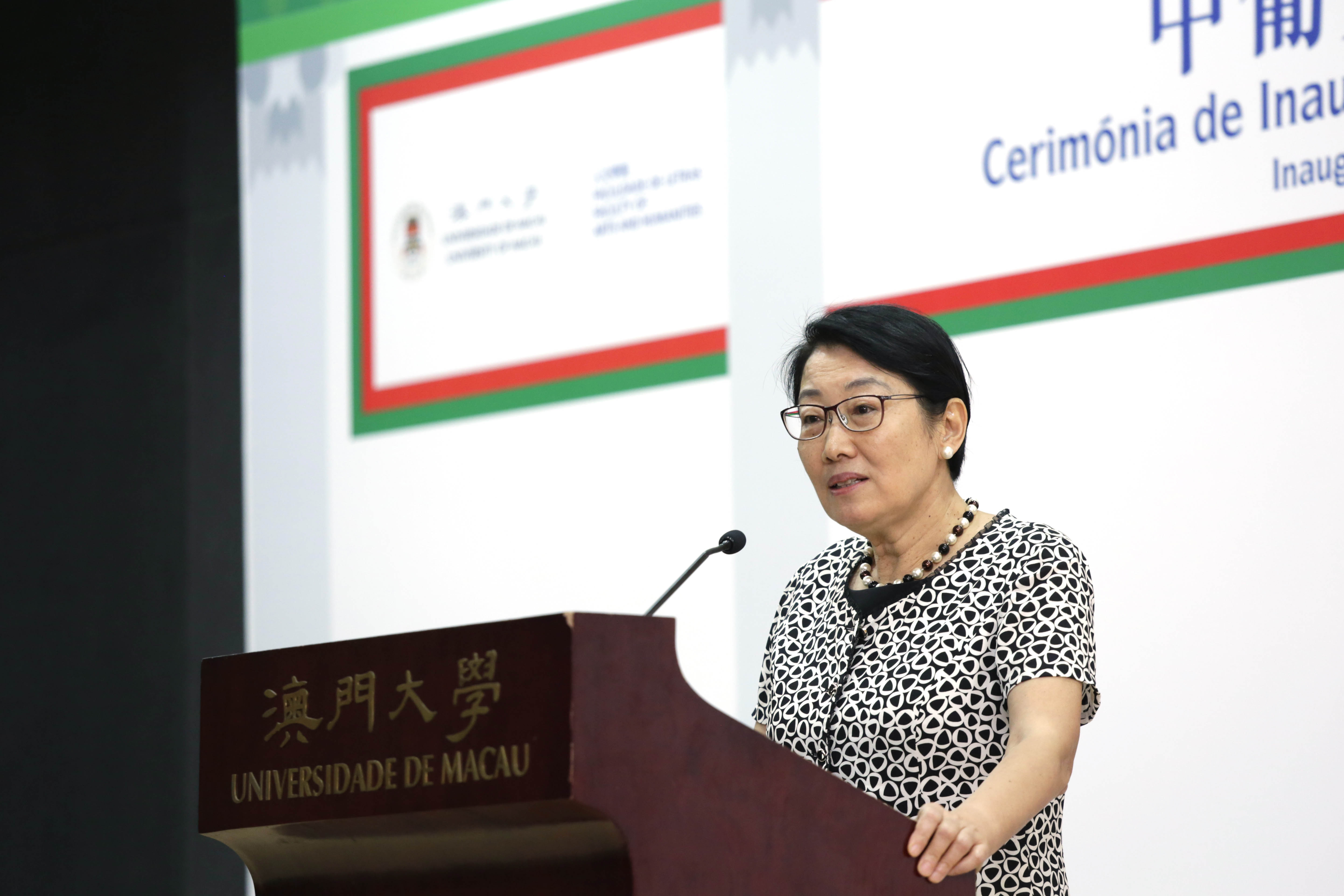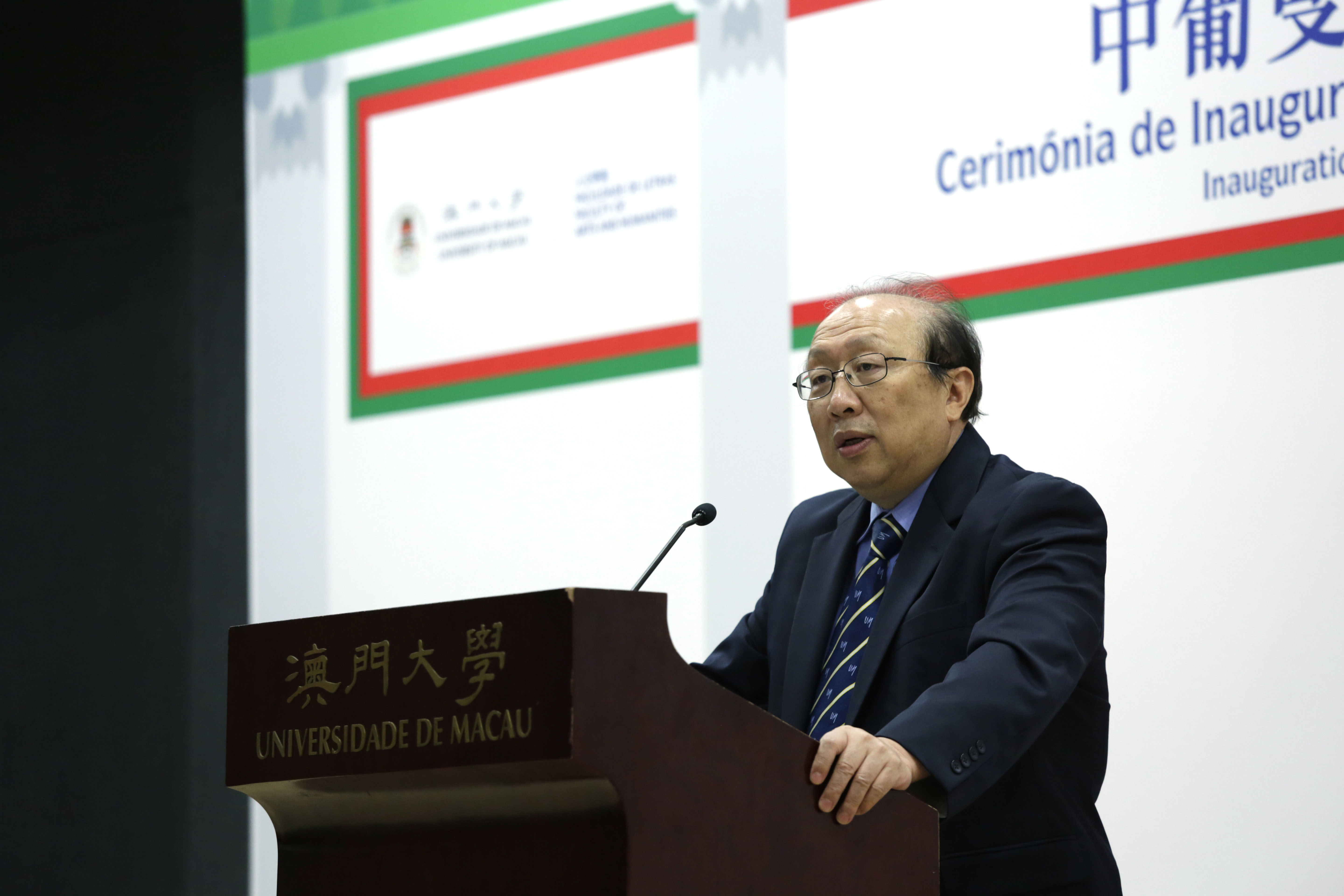 Officiating guests at the ceremony included Tam Chon Weng, secretary for social affairs and culture; Pu Hailong, deputy director of the Department of Education and Culture of the Liaison Office of the Central People's Government in Macao; Yang Shijun, director of the Office of Commissioner of the Ministry of Foreign Affairs of PRC in Macao; Wu Zhiliang, president of the Board of Directors of the Macao Foundation; Sou Chio Fai, director of the Tertiary Education Services Office; Leong Lai, director of the Education and Youth Affairs Bureau;Lam Kam Seng, chair of the UM University Council; and Wei Zhao, rector of UM.