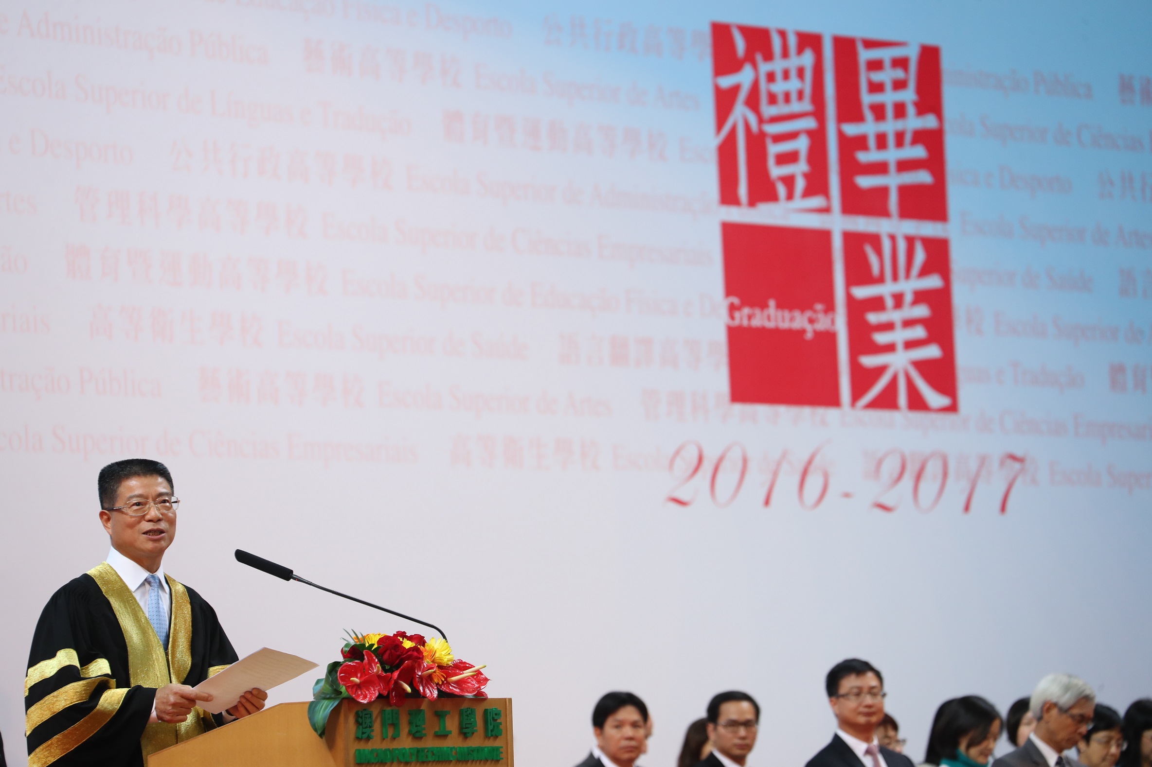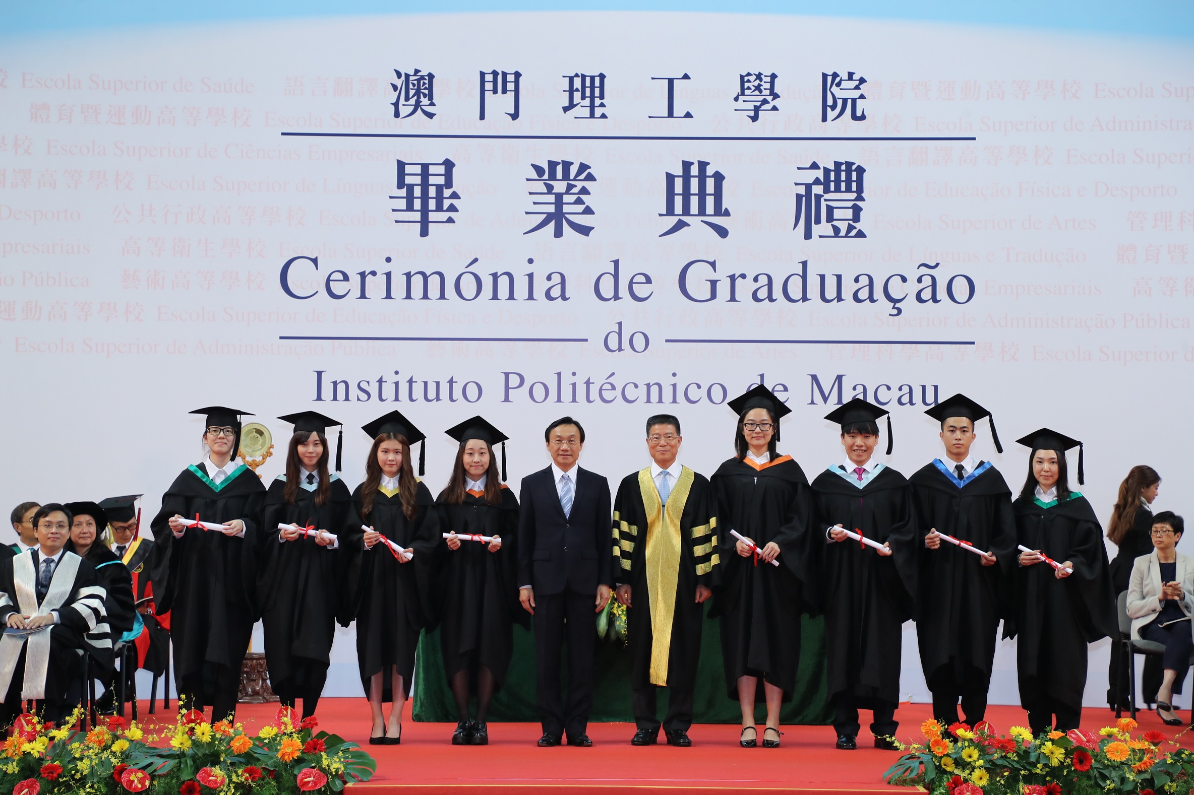 The Macao Polytechnic Institute held the graduation ceremony for the academic year 2016-2017, witnessing a total cohort of 650 students graduating from its 20 Bachelor's degree programs and majors this year. The Chief Executive of Macao Dr. Chui Sai On officiated the ceremony and underscored the SAR government's commitments to promoting the development of education, and to driving the education industry towards modernization and smart management, and stimulating innovation in education. The SAR government is resolved to establish effective and sustained mechanisms for its education system and talents training. To that effect, the government pledged mufti-layered measures to develop the education industry, through policy supports, resource investment, continuous refinement of mechanisms etc. The Chief Executive also encouraged MPI to leverage its unique strengths and advantages so as to provide more professional and practical talents to Macao.