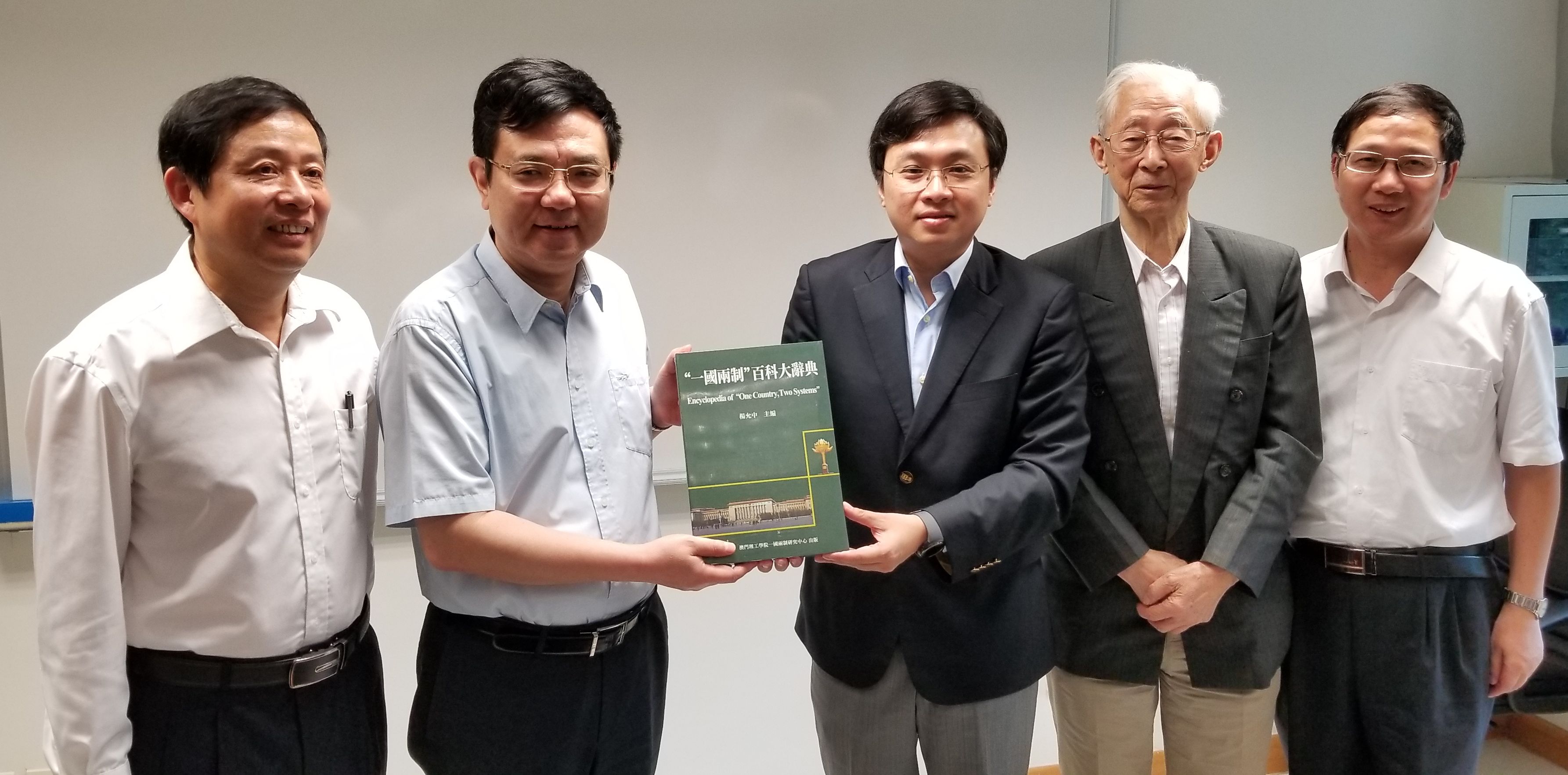 Mr. Xue Xiaofeng, Deputy Director of Liaison Office of the Central People's Government (CPG) in the Macao SAR and his delegation visited the One Country Two Systems Research Centre at Macao Polytechnic Institute (MPI) on 23 June 2017 for a meeting with its staff. The delegation received a warm welcome from Professor Im Sio Kei, Vice President of MPI and Dr. Leng Tiexun, Head of the research centre. Mr. Xue encouraged the centre’s research team to promote collaboration and innovative thinking, and to produce more fruitful research results in the future.
