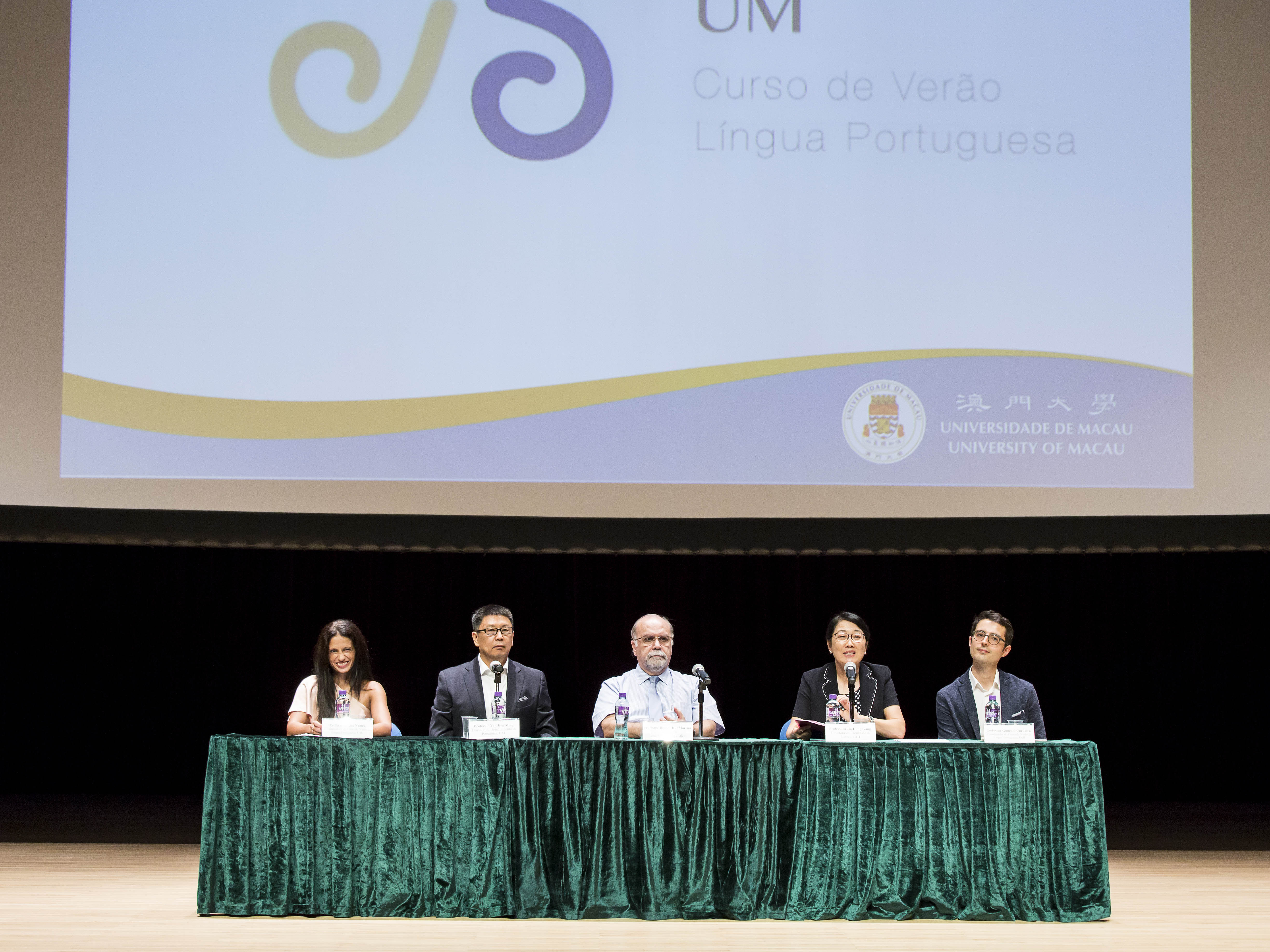 The opening ceremony of the University of Macau’s (UM) Portuguese Language Summer Course, organised by the Department of Portuguese under UM’s Faculty of Arts and Humanities (FAH), was held today (17 July) in UM’s University Hall (N2). FAH Dean Prof Hong Gang Jin said that this year’s course has invited 23 instructors from different parts of the world, who are all proficient speakers of the Portuguese language, in order to expose the more than 450 students from ten countries and regions to different cultures, as well as to help them develop four critical skills, namely communication, collaboration, critical thinking, and creative thinking, so they can become competent global citizens.