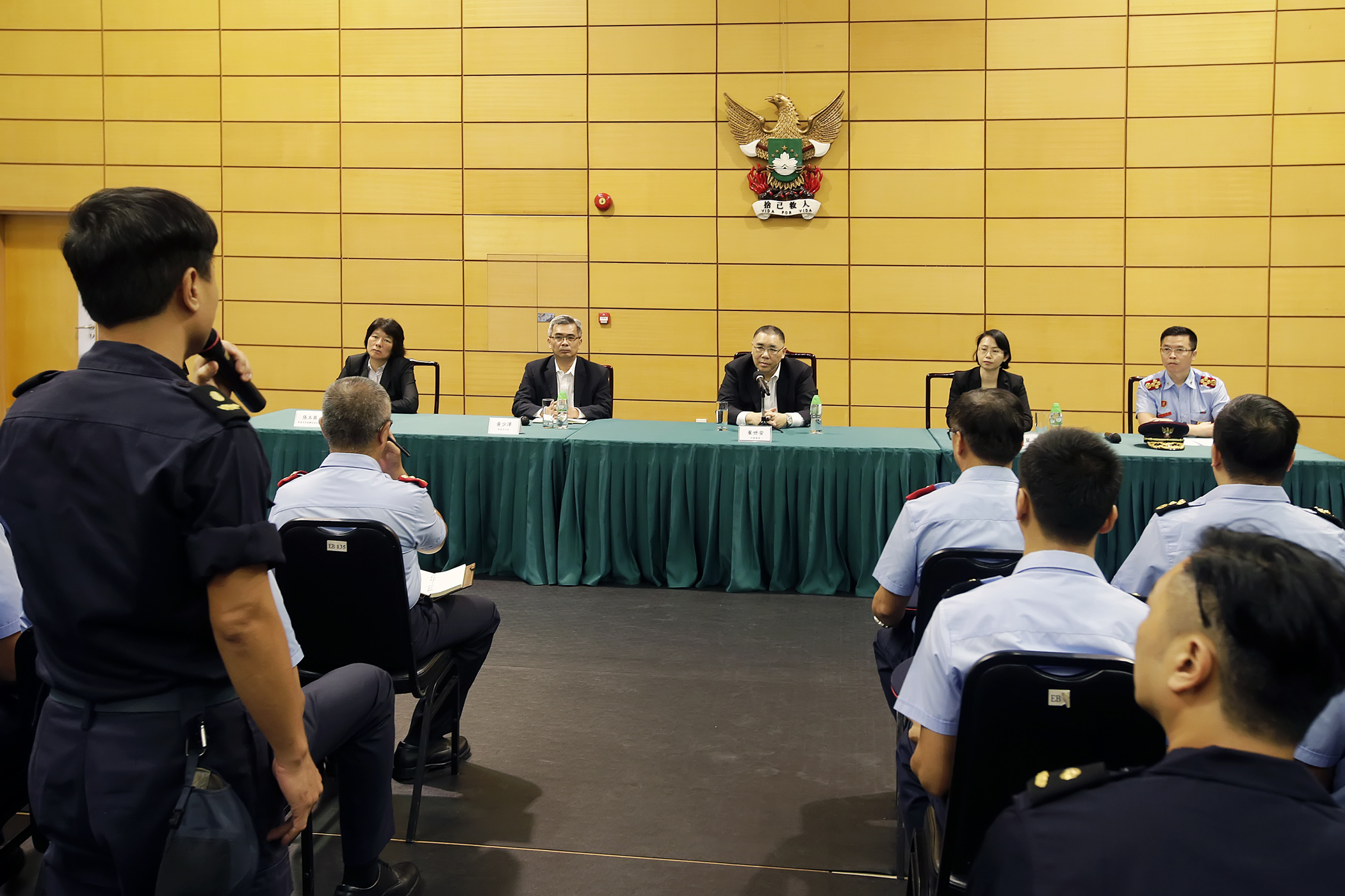 Front-line personnel said during meetings with Mr Chui that they were honoured to bear the responsibility for saving lives and for rescue work, adding they felt the support and encouragement from the public, as people had offered material assistance during their work following the typhoon.