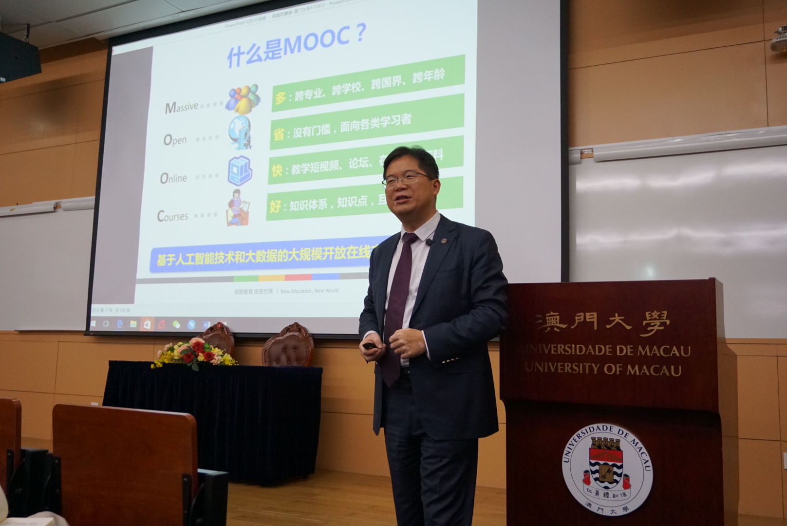 The University of Macau (UM) today (12 October) held a talk on massive open online courses (MOOC). Dr Nie Fenghua, deputy director of the Ministry of Education Research Centre for Online Education, deputy secretary-general of Tsinghua University and director of the university’s Online Education Office, and board chairman of Beiing Muhua Information Technology, was the keynote speaker. During the talk, Nie discussed the current development and future trends of online education. At the same event, UM signed a collaboration agreement with Beijing Muhua Information Technology on the establishment of an online education platform.