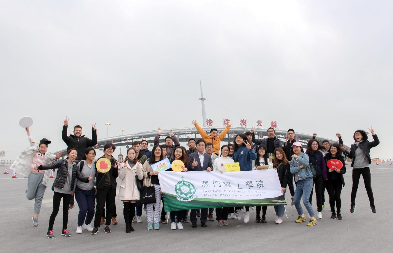 For the purpose of understanding the building and development of the Greater Bay Area, Professor Im Sio Kei, the Vice-President of Macao Polytechnic Institute (MPI) and 40 students have visited the longest seafaring bridge in the world-the Hong Kong-Zhuhai-Macao Bridge (HZMB) on 27th January, 2017. The MPI Vice-President and students have been warmly welcomed by the Hong Kong-Zhuhai-Macao Bridge Authority (HZMBA). MPI encouraged students to be broad-minded and open up their future, so as to bring their advantages to the diversified development of the Pearl River Delta.