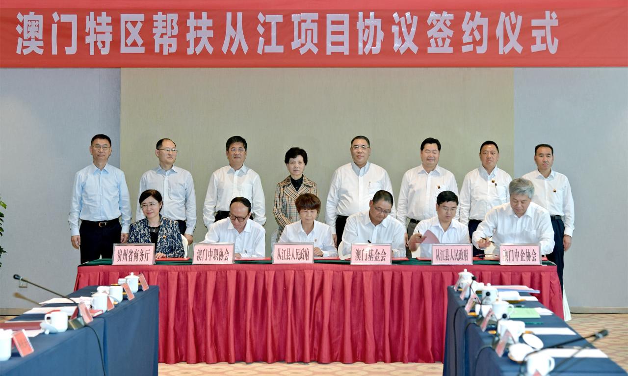 A total of nine agreements collectively involving Macao, the Liaison Office, and the People’s Government of Guizhou Province were today signed in Congjiang County. Four related specifically to support for Guizhou from the SAR Government.