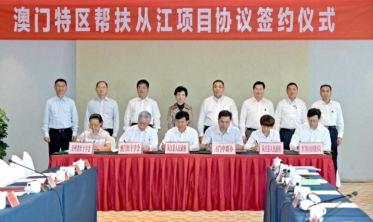 The Liaison Office and the Congjiang County authorities signed up to a scheme whereby the former will provide grants for students from disadvantaged families in the latter place. In addition, Macao non-governmental organisations and companies signed agreements covering four topics: human resource development; poverty reduction projects in Congjiang County; rebuilding projects; and reconstruction of an integrated teaching building in a Congjiang County school.