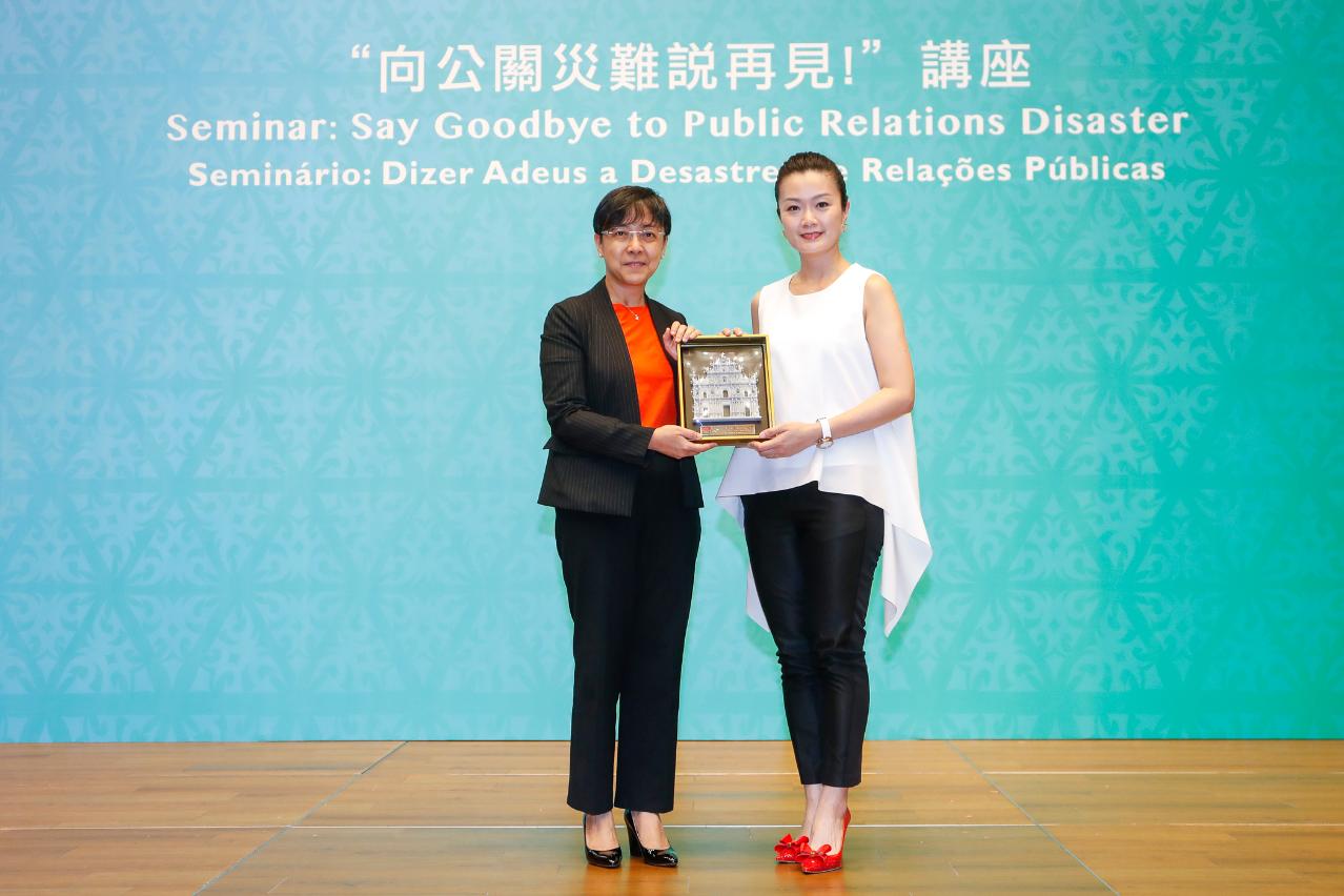 Macao Government Tourism Office (MGTO) organized a seminar on the trending topic of “Say Goodbye to Public Relations Disaster” for tourism industry personnel and MGTO staff. At the Office’s invitation, acclaimed media and public relations expert from Hong Kong, Akina Fong, shared about public relations on social media, disasters that may arise and offer possible solutions to such disasters. The Seminar attracted close to 170 participants. MGTO Director Maria Helena de Senna Fernandes and Deputy Director Cheng Wai Tong attended the seminar.