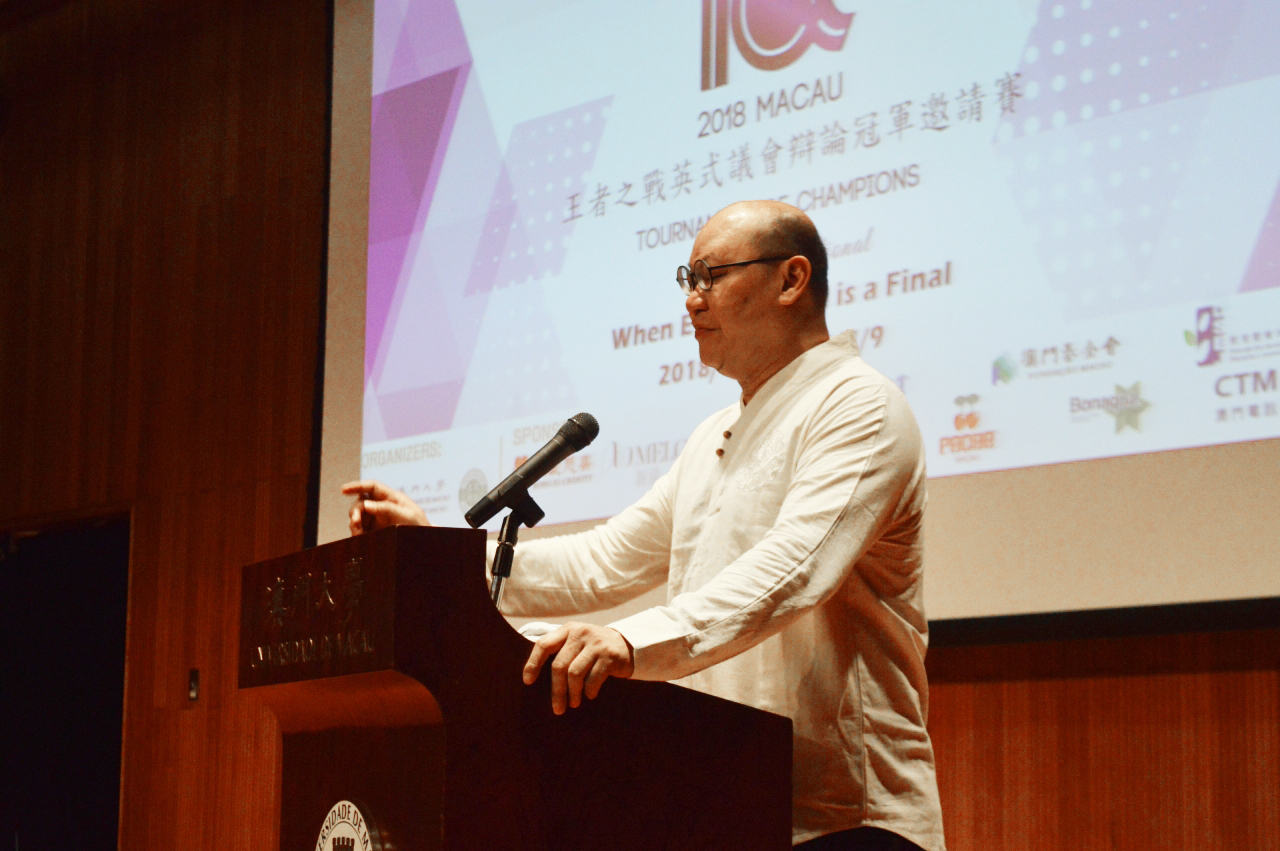 The Macau Tournament of Champions BP Invitational 2018 is the first global English debating competition held in Macao. The event aims to promote cultural exchange and English debating in the local community. This invitational tournament attracted a total of 44 top debating teams from North America, Europe, Asia, Australia, and New Zealand. They are champions of international debating competitions and come from various universities, including Peking University, Harvard University, Yale University, Stanford University, the University of Cambridge, the University of Oxford, the National University of Singapore, Nanyang Technological University, the University of Tokyo, the Chinese University of Hong Kong, UM, the University of Sydney, and the University of Auckland. The adjudication core members of the competition are also world-renowned individuals.