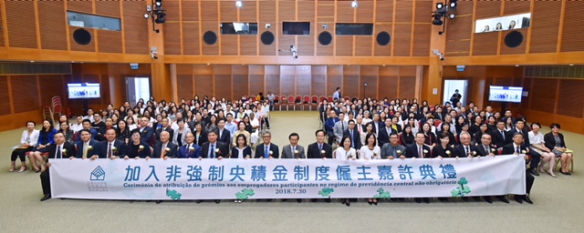 At the ceremony, a total of 31 employer representatives from six gambling enterprises, public utilities, social services and large enterprises also expressed their intention to participate in the non-mandatory central provident fund system in order to provide better retirement protection for their employees.