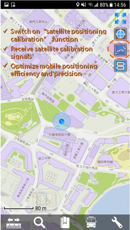 The positioning technology introduced in the application of "Macau GeoGuide" is an important step in popularizing the national professional satellite positioning technology to the level of life application. In the future, more optimized technology will be introduced in response to the development of positioning technologies, which enable citizens and tourists to enjoy better and more accurate geographic information services.
