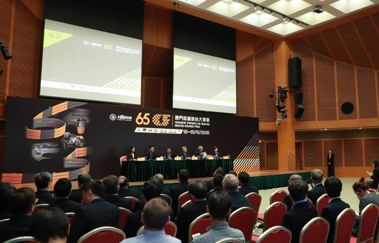 The Suncity Group 65th Macau Grand Prix will be held from November 15-18. The programme includes six races, three of which are official FIA World Cups. The Macau Grand Prix Organizing Committee (MGPOC) held a press conference today (October 18th) at the Macao Science Center to announce information about the event, including provisional entries for all races and promotional and celebratory activities.