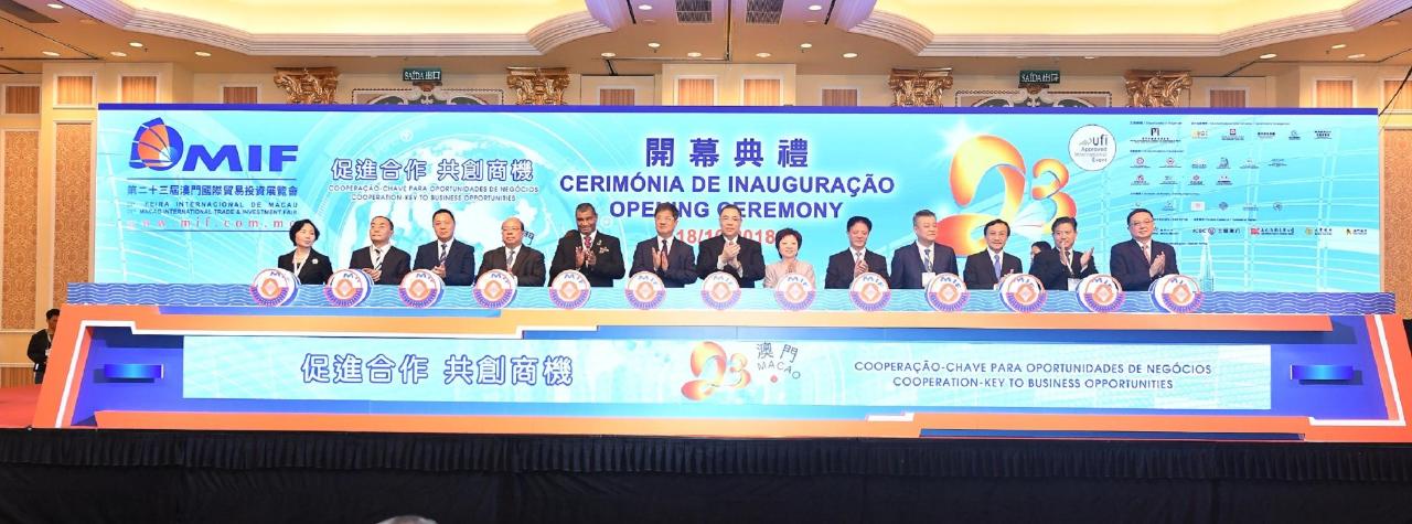 The 23rd Macao International Trade and Investment Fair (23rd MIF) and the 2018 Portuguese-speaking Countries Products and Services Exhibition (Macao) (2018 PLPEX) kicked off today (18 Oct) at the Venetian Macao. Mr Chui Sai On, Chief Executive of the Macao SAR, and other guests were invited to the Opening Ceremony. This year’s exhibition has attracted businesspeople in various fields from all over the world, especially from the countries along the “Belt and Road”, the Pan-Pearl River Delta Region, the Guangdong-Hong Kong-Macao Greater Bay Area, Portuguese-speaking countries and European countries, to jointly explore business opportunities in Macao.