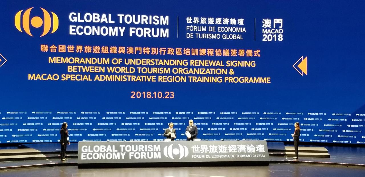An amendment to the original document, confirming the extension, was officially agreed on 23 October, between the Secretary for Social Affairs and Culture, Dr. Alexis Tam Chon Weng, and UNWTO’s Secretary-General, Mr. Zurab Pololikashvili, during the Global Tourism Economy Forum, in Macao. The original protocol – signed in October 2015 – was scheduled to lapse on 31 December, 2018. An extension has been agreed for an additional 12-month period, until 31 December, 2019, renewable. The original 3-year MoU was designed to enhance cooperation between the Macao SAR and UNWTO in the field of tourism education. It called for the enhancement of the quality of human capital in the tourism industry and the ability of tourism destinations to formulate policies, regulations and mechanisms to ensure the competitiveness of destinations and the promotion of sustainable tourism in the region.