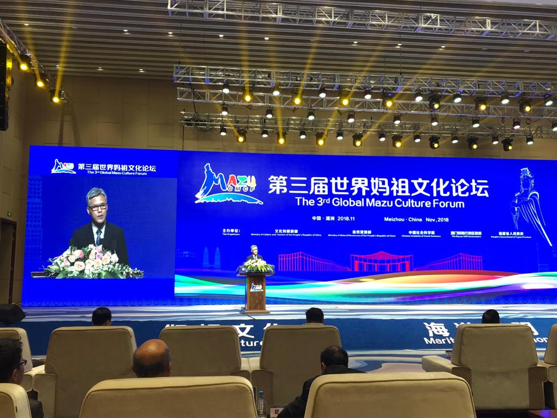 The Global Mazu Culture Forum is jointly organized by the Ministry of Culture and Tourism of the People's Republic of China, Ministry of Natural Resources of the People’s Republic of China, Chinese Academy of Social Sciences, Macao Special Administrative Region Government and Fujian Provincial People’s Government. Vice Chairman of the National Committee of the Chinese People's Political Consultative Conference, Zheng Jianbang, Counsellor of the All-China Federation of Returned Overseas Chinese, Lin Zhaoshu, Chief Planner of the Ministry of Natural Resources of the People’s Republic of China, Li Yongjie, member of the leading Party members’ group of the Fujian Provincial People’s Government, Guo Ningning, and Vice Chairman of the Fujian Provincial Committee of the Chinese People's Political Consultative Conference, Ruan Shiwei, attended the opening ceremony together with other guests. During the opening ceremony, former Secretary of Agriculture and former member of Congress of the Philippines, Emil Lao Ong, Chief Planner of Ministry of Natural Resources of the People’s Republic of China, Li Yongjie, Director of the Institute of History of the Chinese Academy of Social Sciences, Bu Xianqun, member of the leading Party members’ group of the Fujian Provincial People’s Government, Guo Ningning, and Chief of Office of the Secretary for Social Affairs and Culture of the Macao SAR Government, Ip Peng Kin, delivered their keynote speeches among other guests.