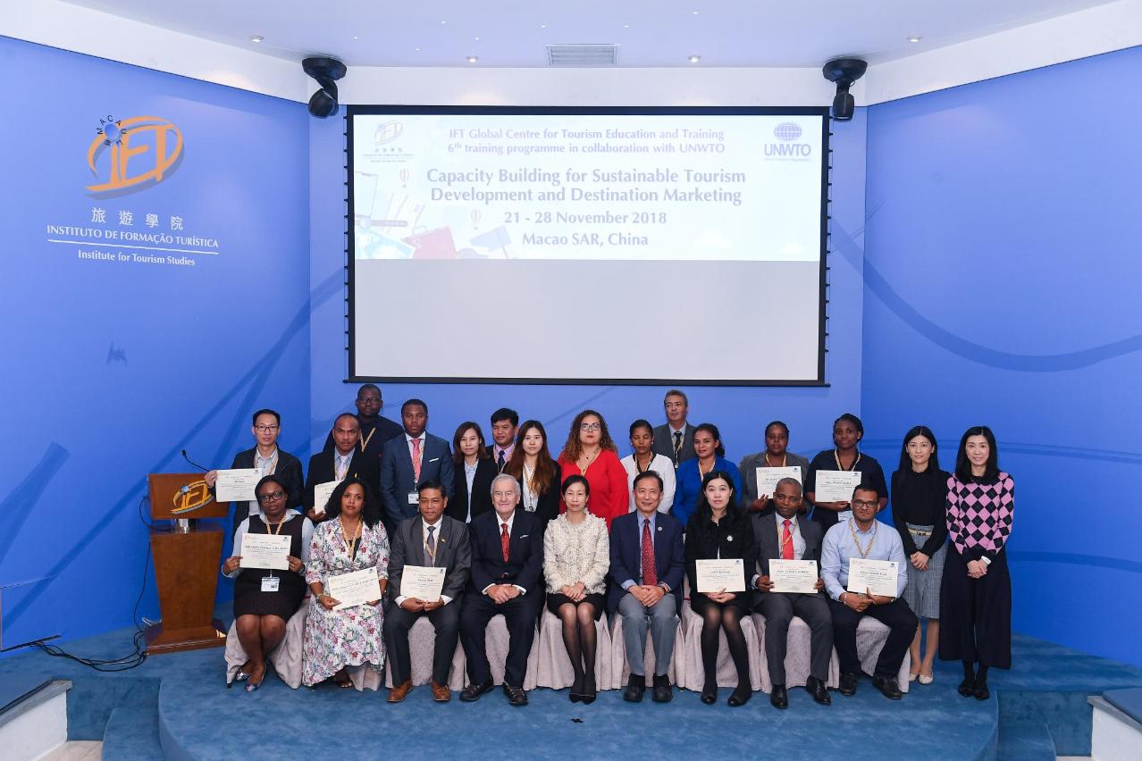The IFT’s Global Centre for Tourism Education and Training organised a training programme titled “Capacity Building for Sustainable Tourism Development and Destination Marketing” from 21 to 28 November. Twenty-two representatives of government departments from Cambodia, Angola, Cape Verde, Mozambique, Sao Tome and Principe, Timor-Leste, the World Tourism Organization(UNWTO), Greater Bay Area and Macao participated in the training. This is the sixth training held by the Centre.