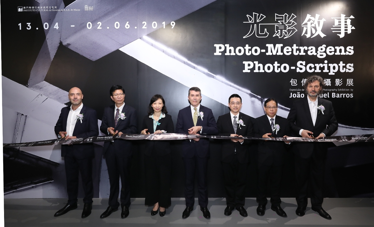 “Photo-Scripts – Photography Exhibition by João Miguel Barros”, organised by the Cultural Affairs Bureau, was inaugurated on 12 April, at 6:30pm, at the Macao Contemporary Art Centre – Navy Yard No.1. The opening ceremony was held in a lively atmosphere and was officiated by the Consul-General of Portugal in Macao and Hong Kong, Paulo Jorge Sousa da Cunha Alves; the President of the Cultural Affairs Bureau of the Macao SAR Government, Mok Ian Ian; the Deputy Director of the Department of Publicity and Culture of the Liaison Office of the Central People's Government in the Macao S.A.R., Liu Wei; the Director of the Department of Public Diplomacy and Information of the Office of the Commissioner of the Ministry of Foreign Affairs of the People’s Republic of China in the Macao S.A.R., Zheng Xinyou; the President of the General Assembly of the Photographic Society of Macao, Ma Chi Son; the curator and artist, Jose Drummond; and the artist João Miguel Barros.