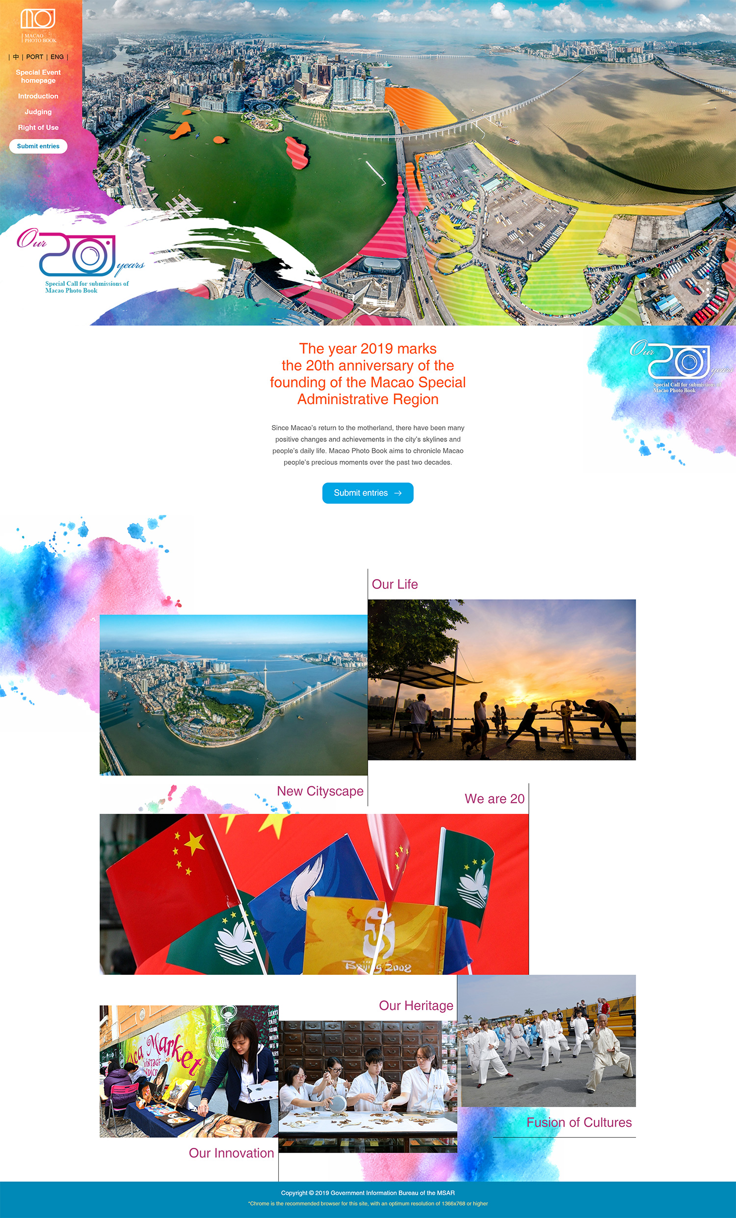 Anyone with valid Macao ID documents is eligible to submit entries electronically via the following website: https://photo.gcs.gov.mo/our20years; participants must sign up before uploading their entries. The deadline for submissions is 31 July 2019 (24:00).