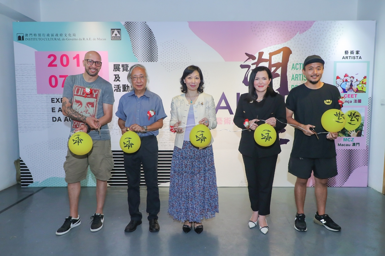 The opening ceremony was officiated by the President of the Cultural Affairs Bureau, Mok Ian Ian; the Executive Vice President of the Macau Artist Society, Sio In Leong; the President of the Macau Association for Community Care Children, Rosalina Anok Novo; French graffiti artist CEET and local graffiti artist MCZ. The exhibition “LAKE UP GRAFFITI JAM” is co-organized by the IC and the Macau Artist Society, inviting French graffiti artist CEET and local graffiti artist MCZ to jointly decorate the Nam Van Lakeside Plaza with their creative artworks, injecting cultural and creative atmosphere in that area.