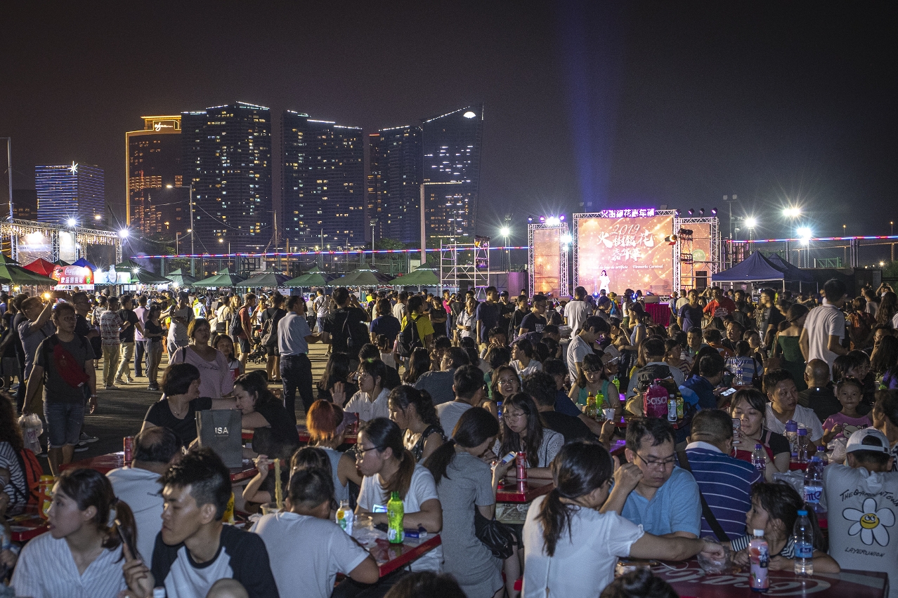 The opening ceremony of the Fireworks Carnival was officiated by MGTO Director Maria Helena de Senna Fernandes, Deputy Chief of Division of Social Affairs Department of the Liaison Office of the Central People's Government in the Macao Special Administrative Region, Chen Jingfeng, Deputy Commissioner of Public Security Police Force, Lao Wan Seong, Vice Chairman of the General Union of Neighbors Association of Macau, Cheong Lai Chan, and Vice President of the General Union of Neighbors Association of Macau and Director of the Community Economic Affairs Committee, Lei Cheok Kuan, together with other guests.