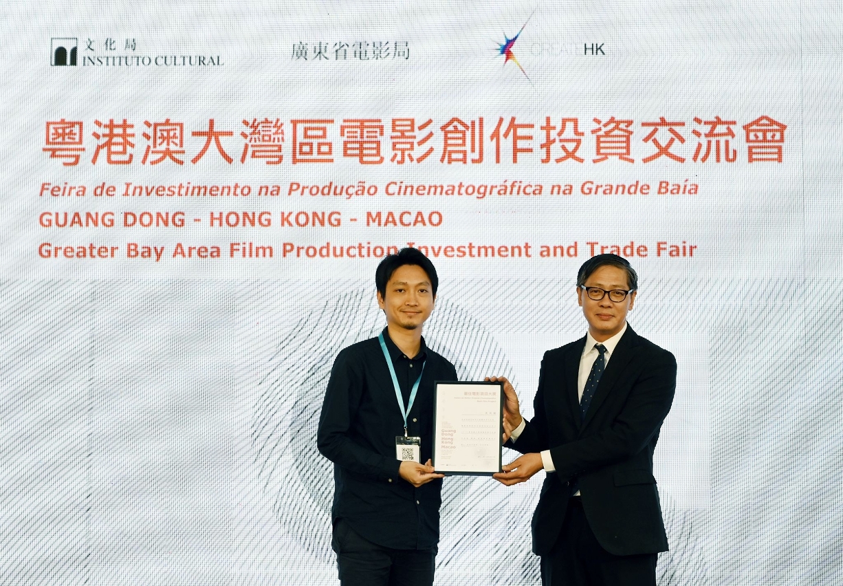 In order to recognise film projects with great potential, two awards have been specially designed for the occasion, namely the “Best Film Project Award” and the “Most Investment Potential Award”, which were voted by the professional adjudicating panel and by investors from the three regions. The film project The Ceiling from Hong Kong received the “Best Film Project Award” from the Vice President of the Cultural Affairs Bureau, Chan Kai Chon, and the film project One More Round from Hong Kong received the “Most Investment Potential Award” from the Head of the Division of Culture and Sports of the Department of Publicity and Culture of the Liaison Office of the Central People's Government in the Macao SAR, Li Fengzhou. The Fair was also attended by the President of the Administrative Committee of the Cultural Industries Fund, Leong Heng Teng; the Members of the Administrative Committee of the Cultural Industries Fund, Chu Miu Lai and Wong Keng Chao; the Deputy Director of the Film Administration of Guangdong Province, Lu Zhongguang; the Assistant Head of Create Hong Kong of the Hong Kong SAR Government, Mak Sing Hei; and the Head of the Division of Youth Organizations and Training of the Education and Youth Affairs Bureau, Wong Ka Ki, etc.