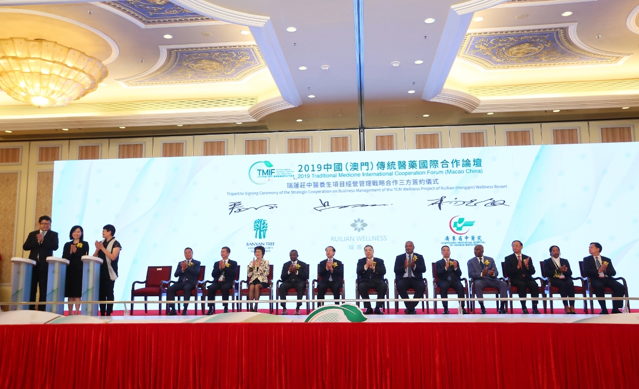 At the opening ceremony of the Forum, in the presence of Mr. Chui Sai On, Chief Executive of the Macao Special Administrative Region and other officiating guests, the Launch Ceremony of the Transformation Base of TCM Scientific and Technological Achievements in the Greater Bay Area and Alliance Ceremony of the AMIGO Alliance of International Youth TCM Practitioners were initiated. At the same time, GMTCM Park signed deals with Guangzhou Pharmaceutical Holdings Limited, Tasly Group and Zhongguancun Private Equity & Venture Capital Association. In addition, the Tripartite Signing Ceremony for Strategic Cooperation in the Operation and Management of TCM Health Projects of the Ruilian (Hengqin) Wellness Resort and Awarding Ceremony of the Belgium Welcome Office were also held. The cooperation between GMTCM Park and international institutions, outstanding enterprises and colleges indicates that GMTCM Park has made important progress in creating a favorable atmosphere for the development of the TCM industry, offering good conditions for the development of TCM and healthcare industries and building an international development platform of a higher level and a broader vision for TCM enterprises including those in Macao.