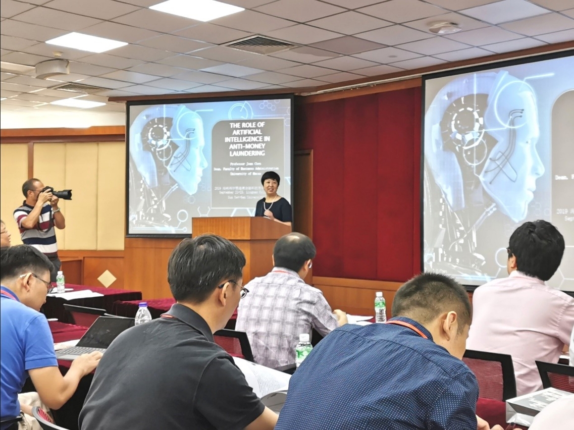 Prof Jean Chen, dean of UM’s Faculty of Business Administration, chaired the forum and delivered a keynote speech on the role of artificial intelligence in anti-money laundering efforts. From a regulatory perspective, Prof Chen provided a comprehensive review of the latest developments in anti-money laundering efforts worldwide and an in-depth analysis of the application of artificial intelligence in this increasingly important field. She also proposed valuable suggestions on the possible applications of Fintech in Macao.