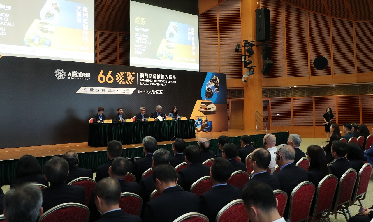 The Suncity Group 66th Macau Grand Prix will be held from November 14-17. The programme includes six races, of which three of the four headliners are official FIA World Cups. The Macau Grand Prix Organizing Committee (MGPOC) held a press conference today (October 17th) at the Macao Science Center to announce the impressive line-up of international and regional drivers and riders - which includes the defending champions from all four bill-topping races - and to announce details of promotional activities ahead of and during the four-day motorsport extravaganza.