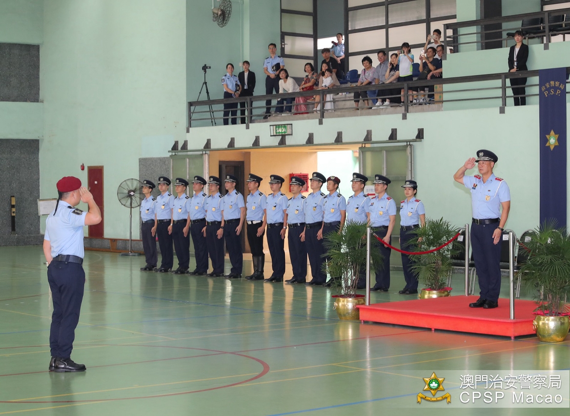 A promotion ceremony to the rank of Senior Inspector was held this morning (28 October) at the Special Police Unit Building of the Public Security Police Force (PSP). The simple and solemn ceremony was officiated by Commissioner Leong Man Cheong and attended by the Directorate and heads of various departments, who wore new epaulettes on the uniforms of the promoted officers, extended to them their warmest congratulations and encouraged them to have better performance in the new stage of their career.