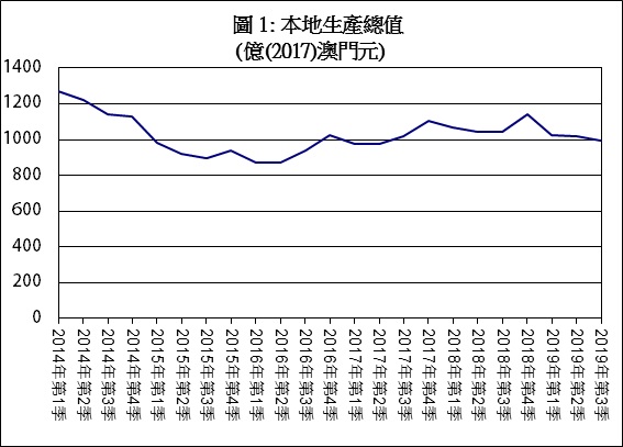 The University of Macau’s (UM) Centre for Macau Studies and Department of Economics today (14 January) held an event to release the 2020 macroeconomic forecast for Macao and an opening ceremony for the Macao Economic Database. Statistics show that Macao’s economy continued to deteriorate in 2019 amid the economic slowdown in mainland China. Negative growth was recorded for three consecutive quarters. The year-on-year growth rates were -3.8% in the first quarter, -2.2% in the second quarter and -4.5% in the third quarter, respectively (Figure 1 and 2).