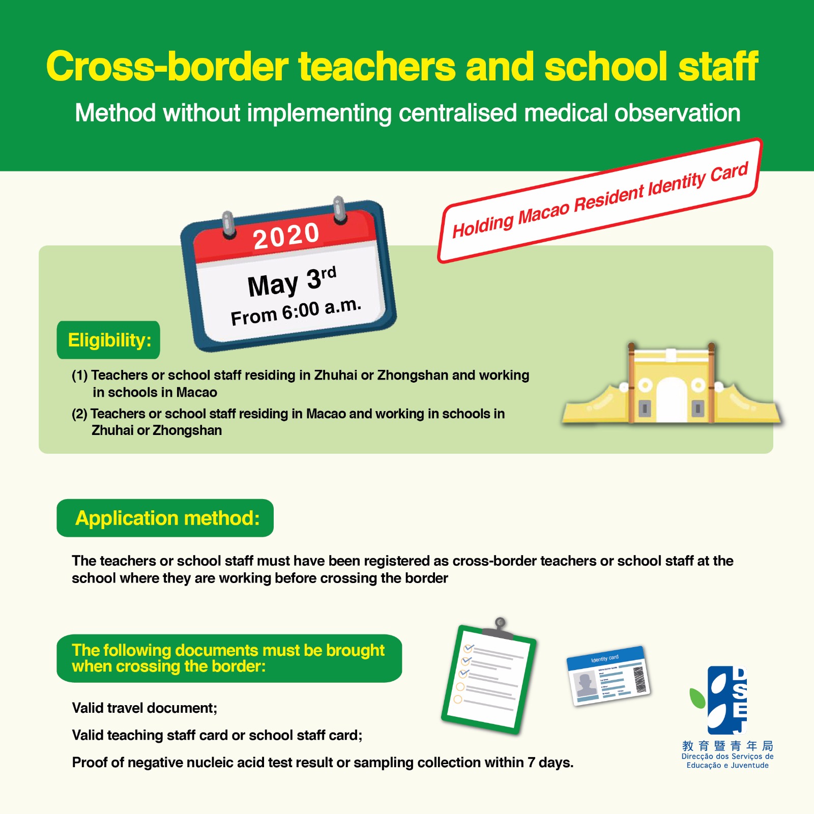 • Cross-border teachers and school staff holding Macao Resident Identity Card - Method without implementing centralised medical observation